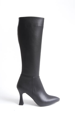 Kadın Sivri Burun Fermuarlı İnce Topuk Günlük Çizme Zera Siyah