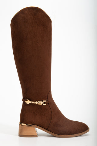 Kadın Diz Altı Altın Toka Detaylı Fermuarlı Günlük Çizme Lina Kahve Süet