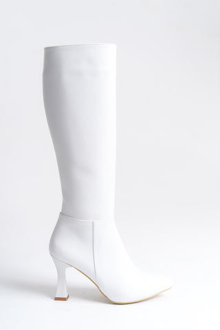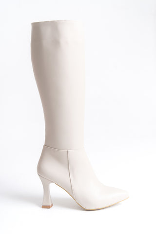 Kadın Sivri Burun Fermuarlı İnce Topuk Günlük Çizme Zera Beyaz
