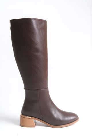 Kadın Yuvarlak Burun Fermuarlı Kalın Topuklu Günlük çizme Monera Kahve Cilt