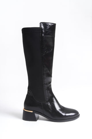 Kadın Diz Altı Fermuarlı Streç Lastikli Günlük Çizme Nora Siyah Rugan