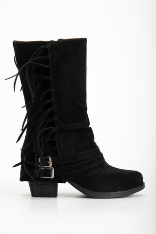 Kadın Yuvarlak Burun Körüklü Günlük Çizme Stela Siyah Süet