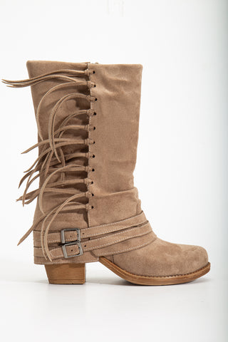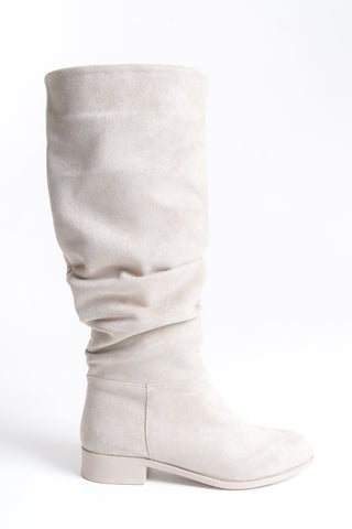 Kadın Günlük Oval Burunlu Körüklü Diz Altı Çizme Amora Bej Süet
