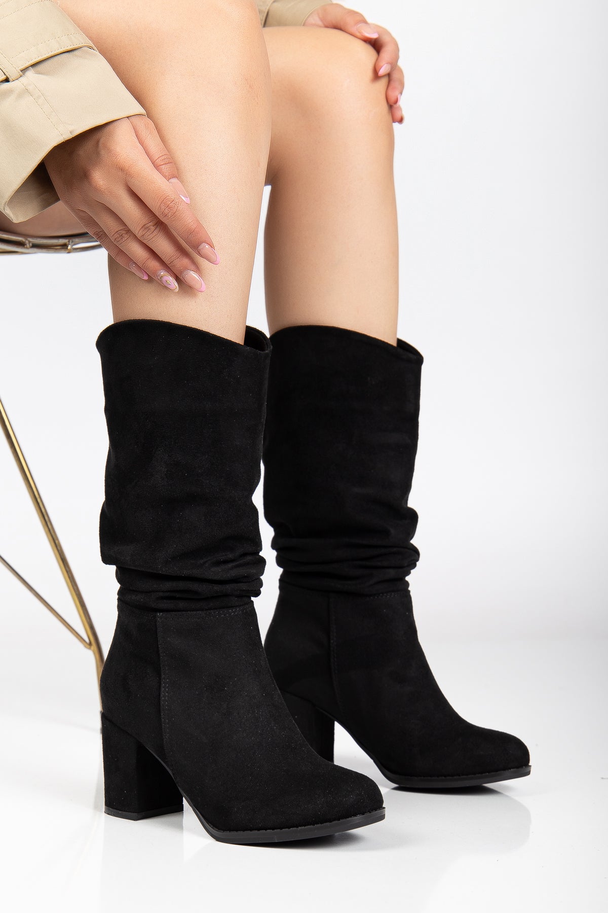 Günlük kullanımda şıklığı ve rahatlığı aynı anda isteyen kadınlar,Topuklu çizmeyi tercih eden ama rahatlıktan ödün vermek istemeyenler,Kadın Kalın Topuk Yuvarlak Burun Büzgülü Diz Altı Çizme Tina, rahatlığı, feminen duruşu ve trend büzgü detayıyla sezonun gözde parçalarından biri olacak. Dolabınızın hem şık davetlerde hem de günlük kombinlerde en çok tercih edilen tamamlayıcısı olmaya hazır!