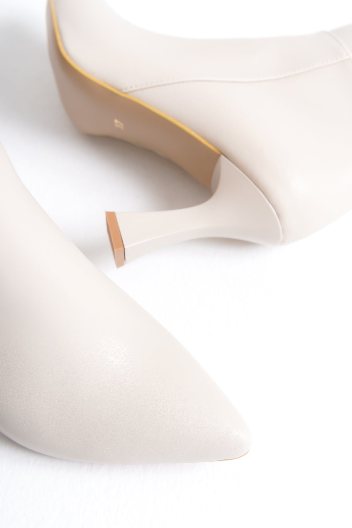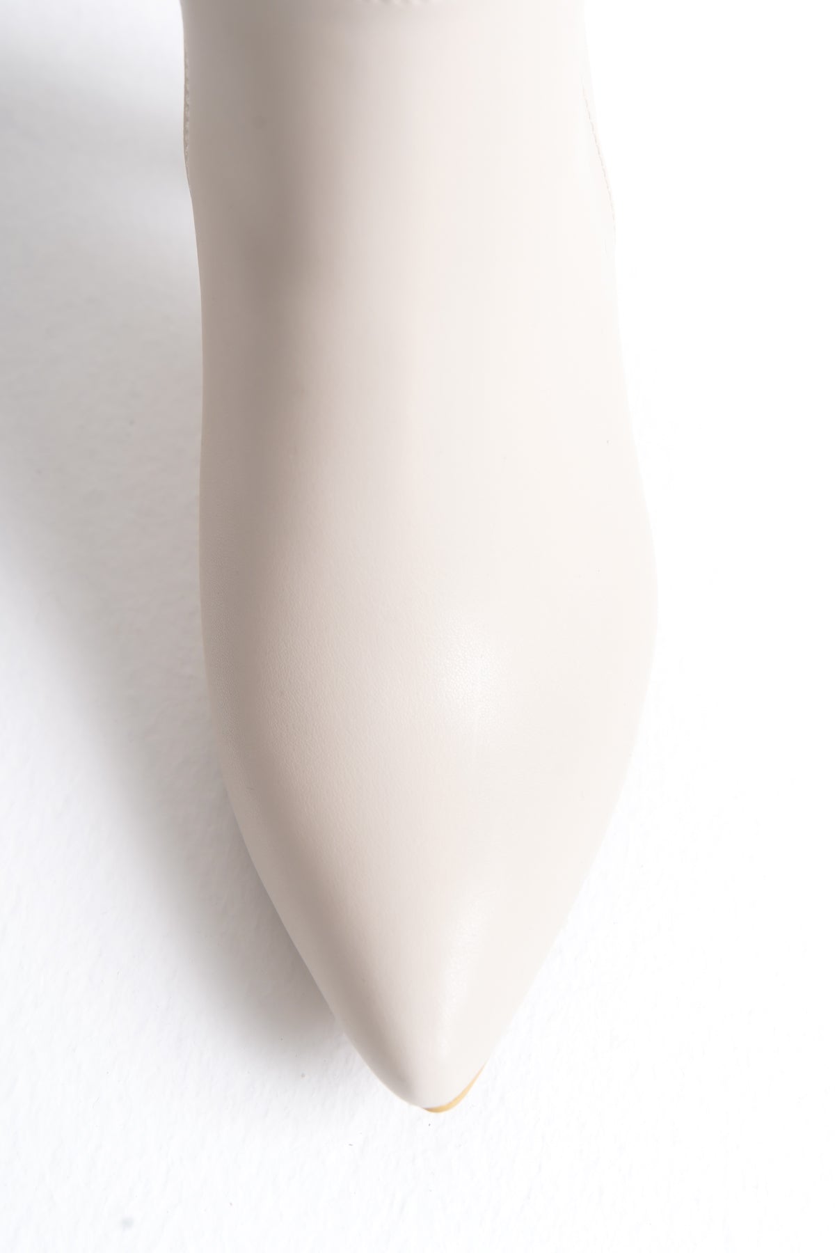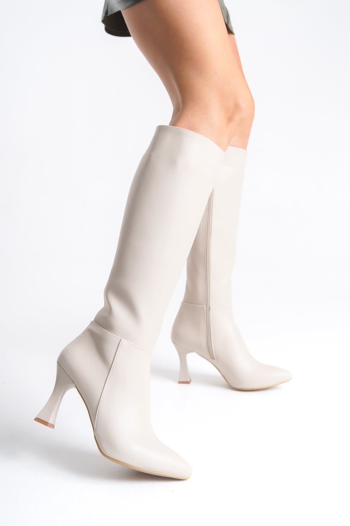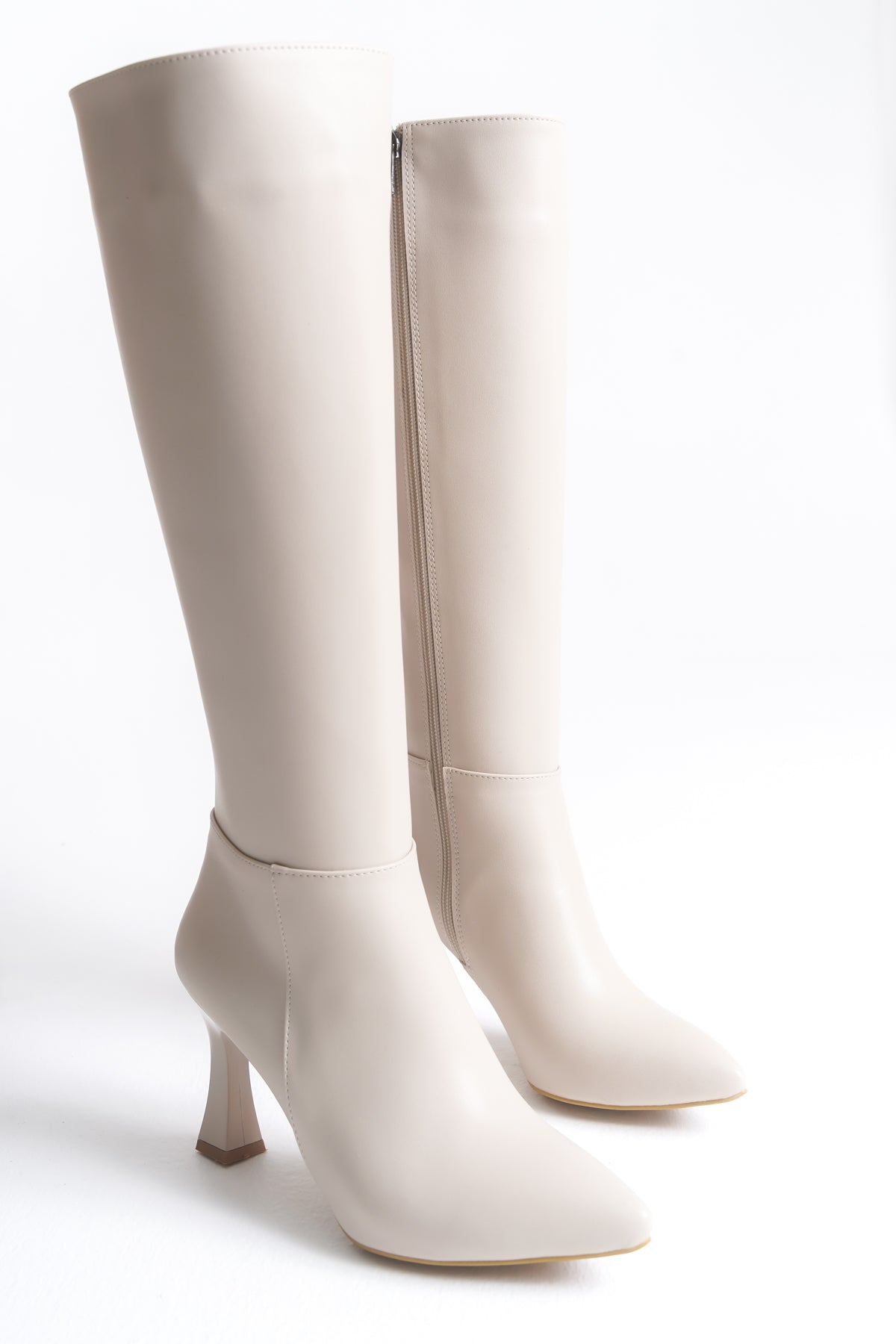 Kadın Sivri Burun Fermuarlı İnce Topuk Günlük Çizme Zera Bej
