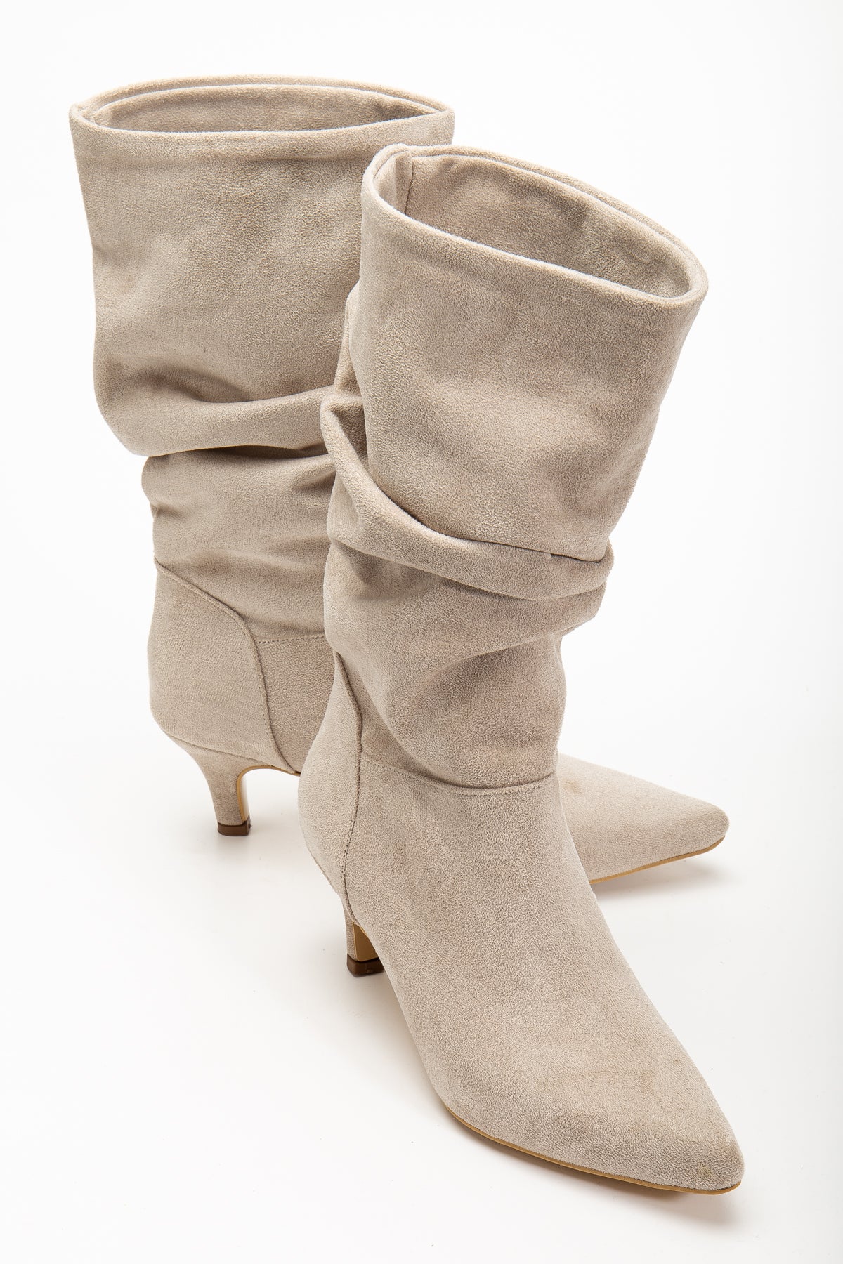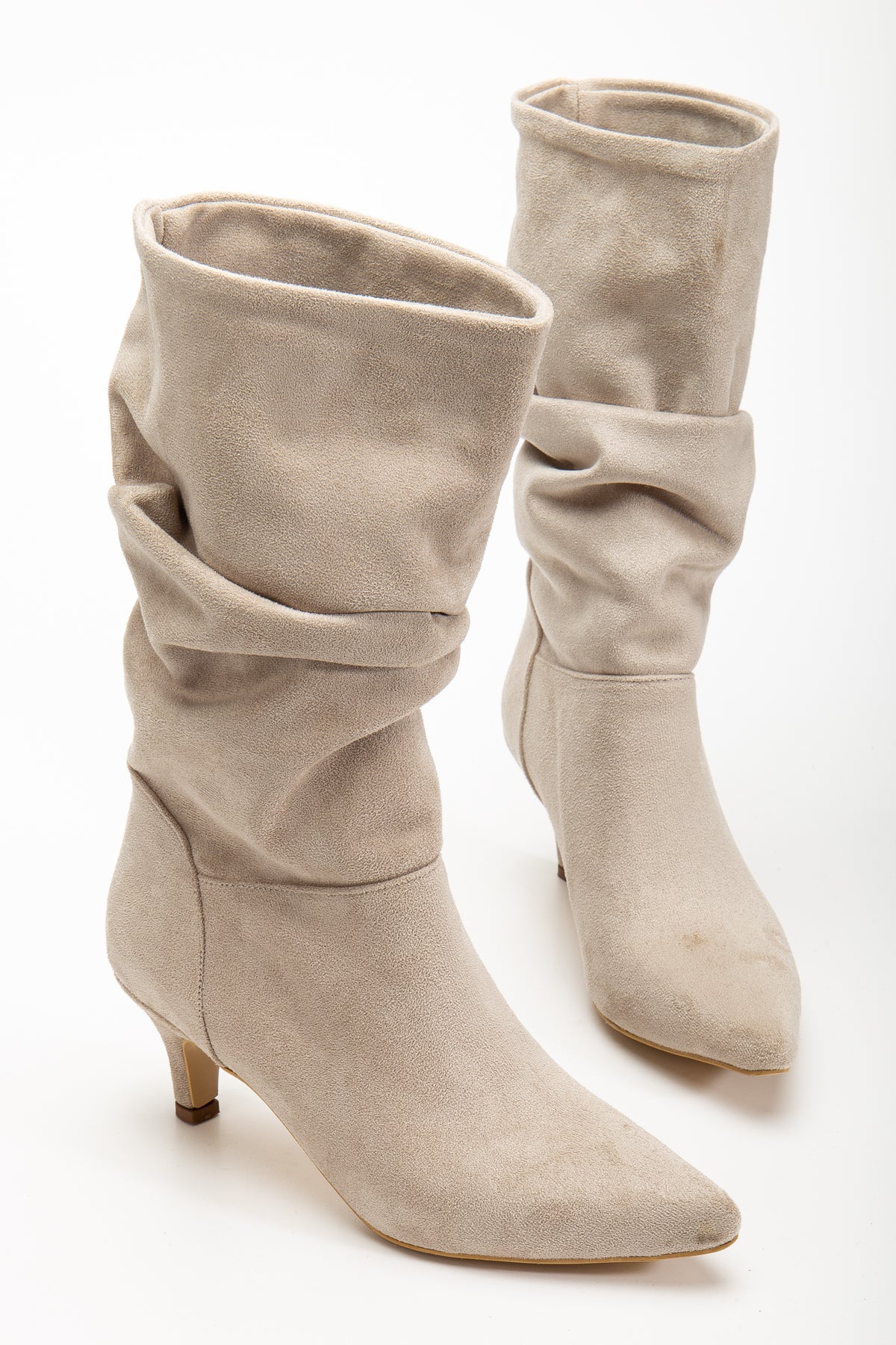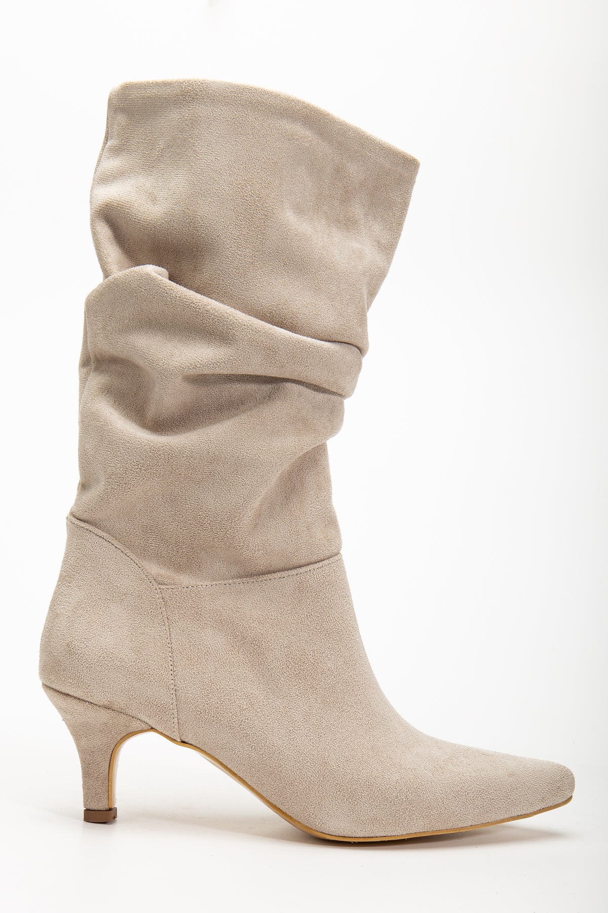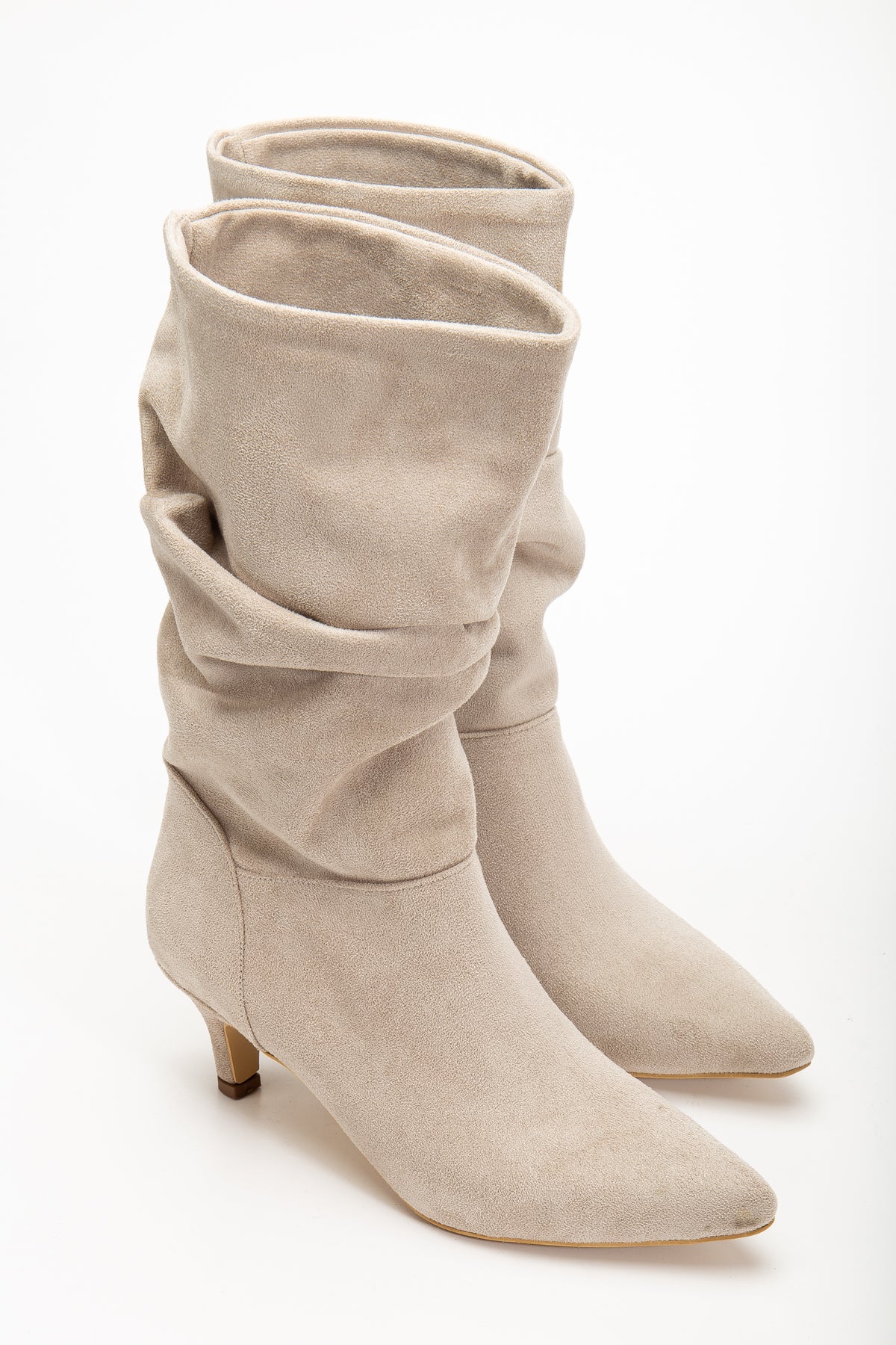 Tores çizme, zarif sivri burun detayı ve körüklü diz altı tasarımıyla klasik ve modern çizgiyi buluşturur. İnce topuğu, zarif bir görünüm kazandırırken günlük kullanıma uygun yüksekliğiyle konforlu bir duruş sunar.