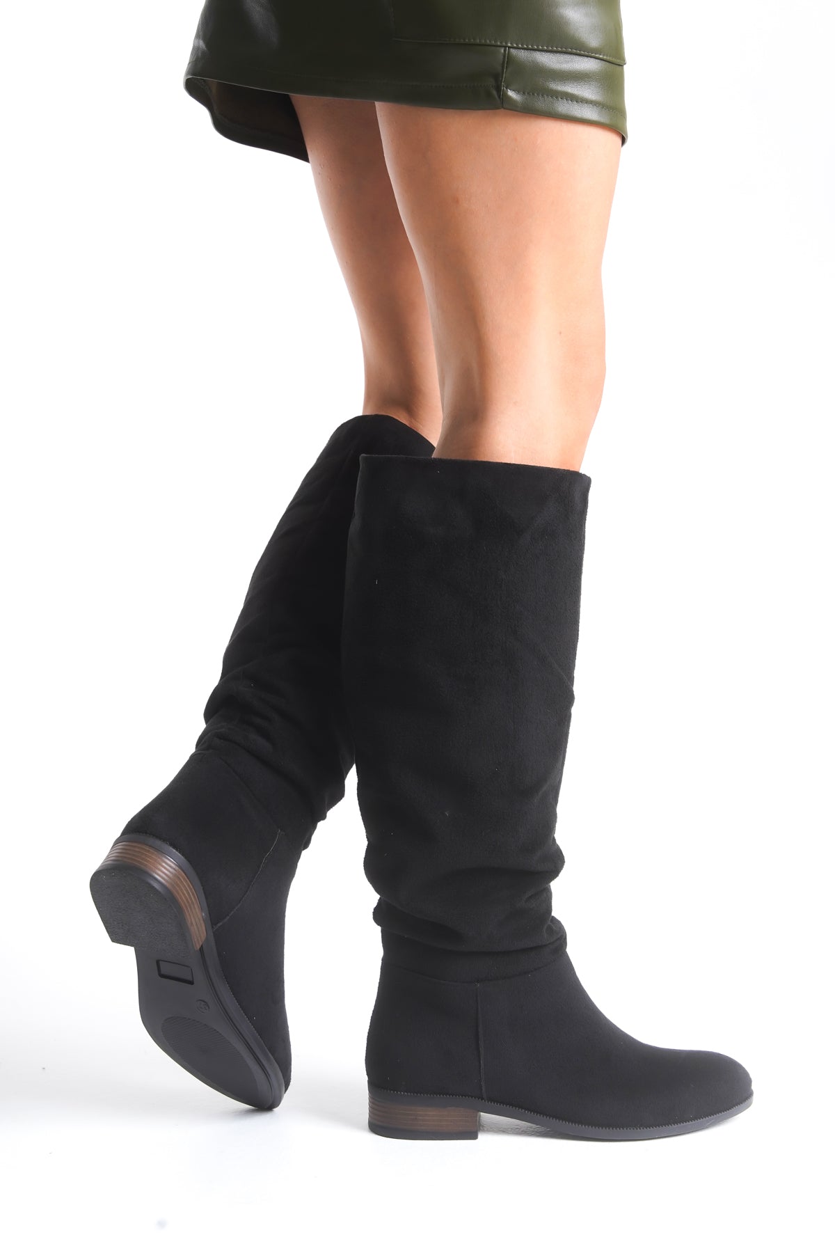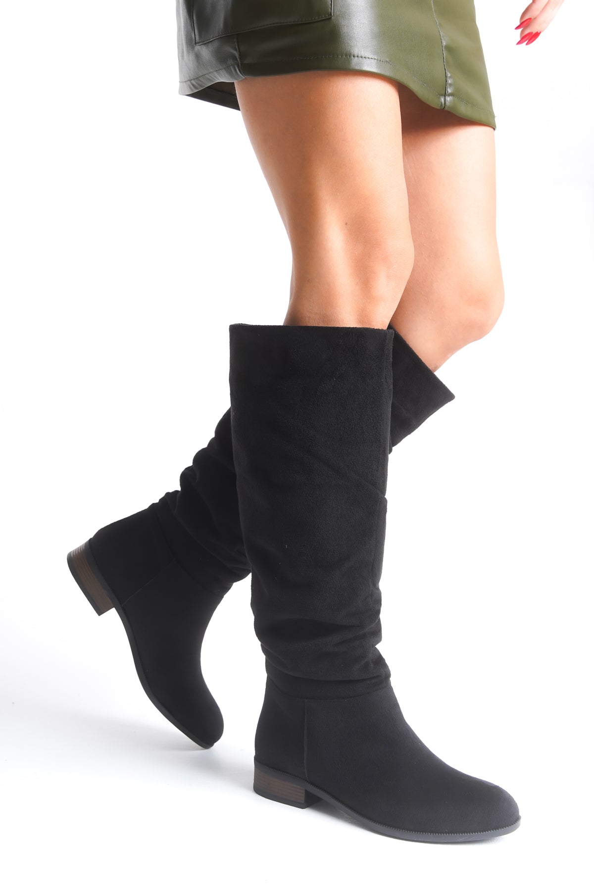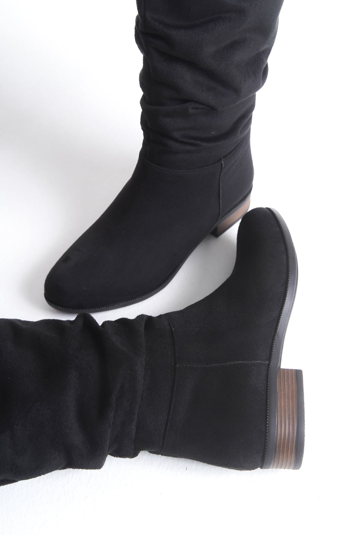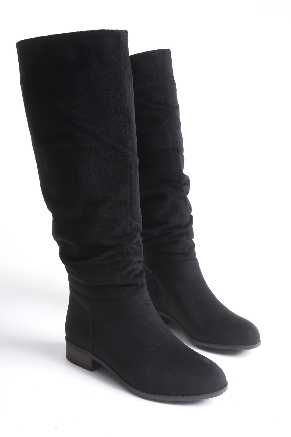 Kadın Yuvarlak Burun Körüklü Günlük Çizme Stela Siyah Süet