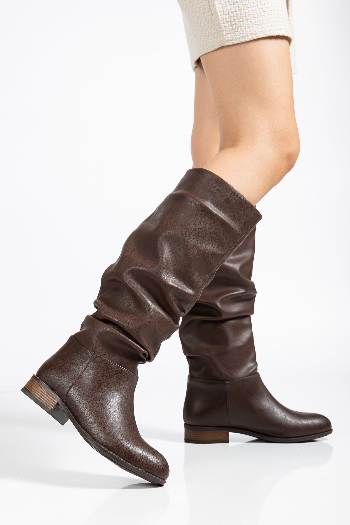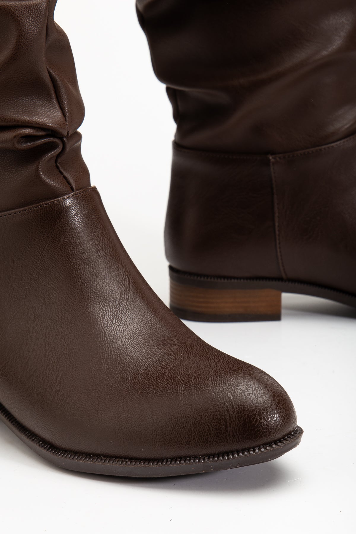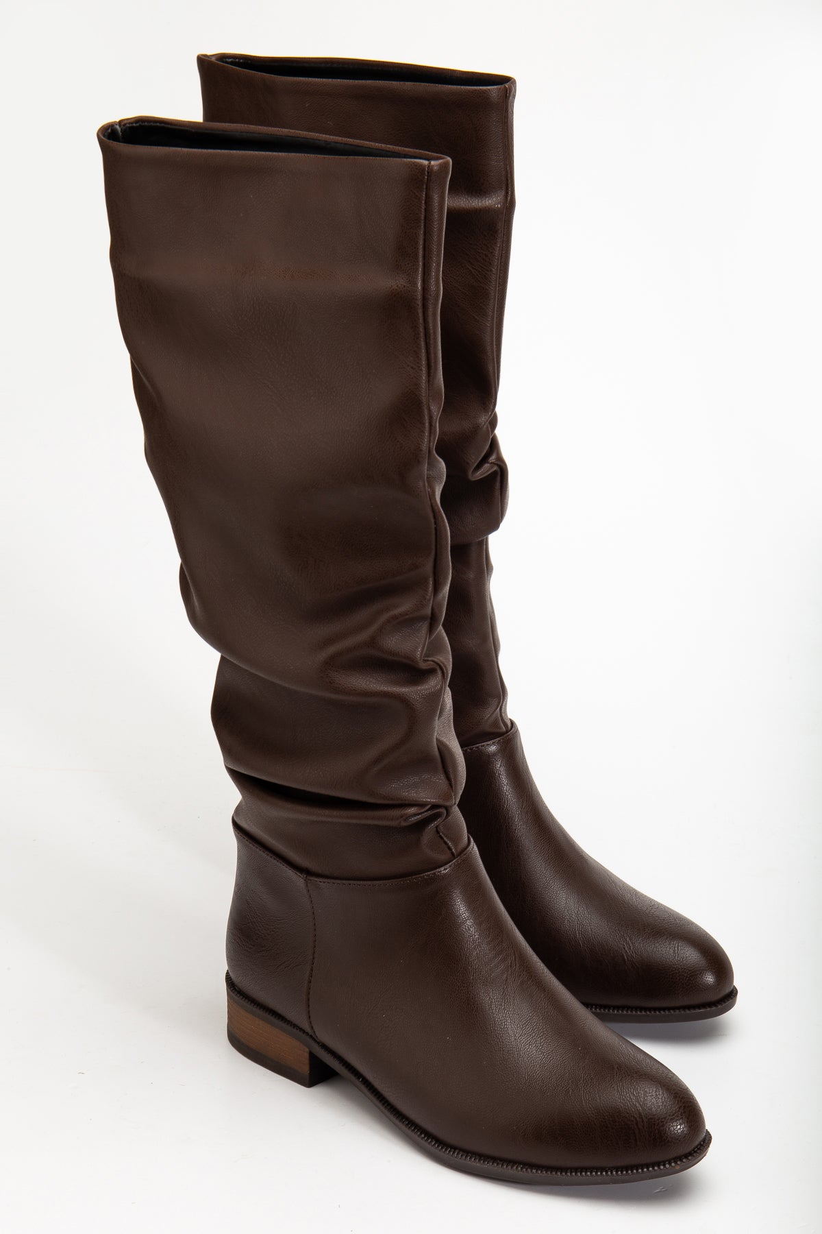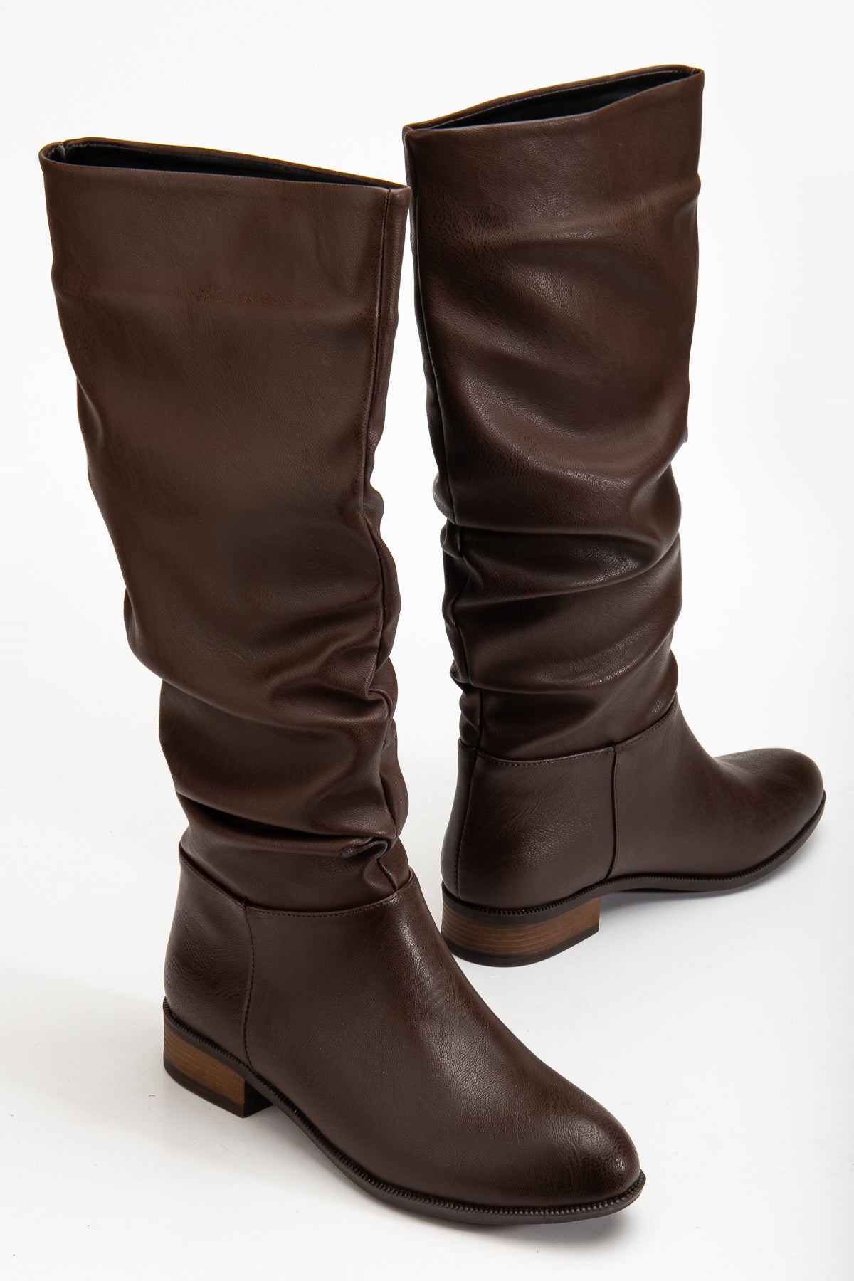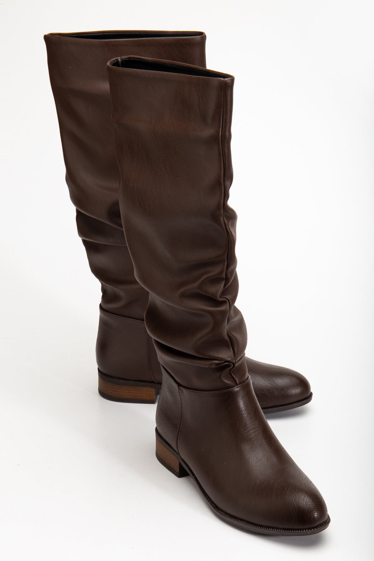 Kadın Yuvarlak Burun Körüklü Günlük Çizme Stela Kahve Cilt