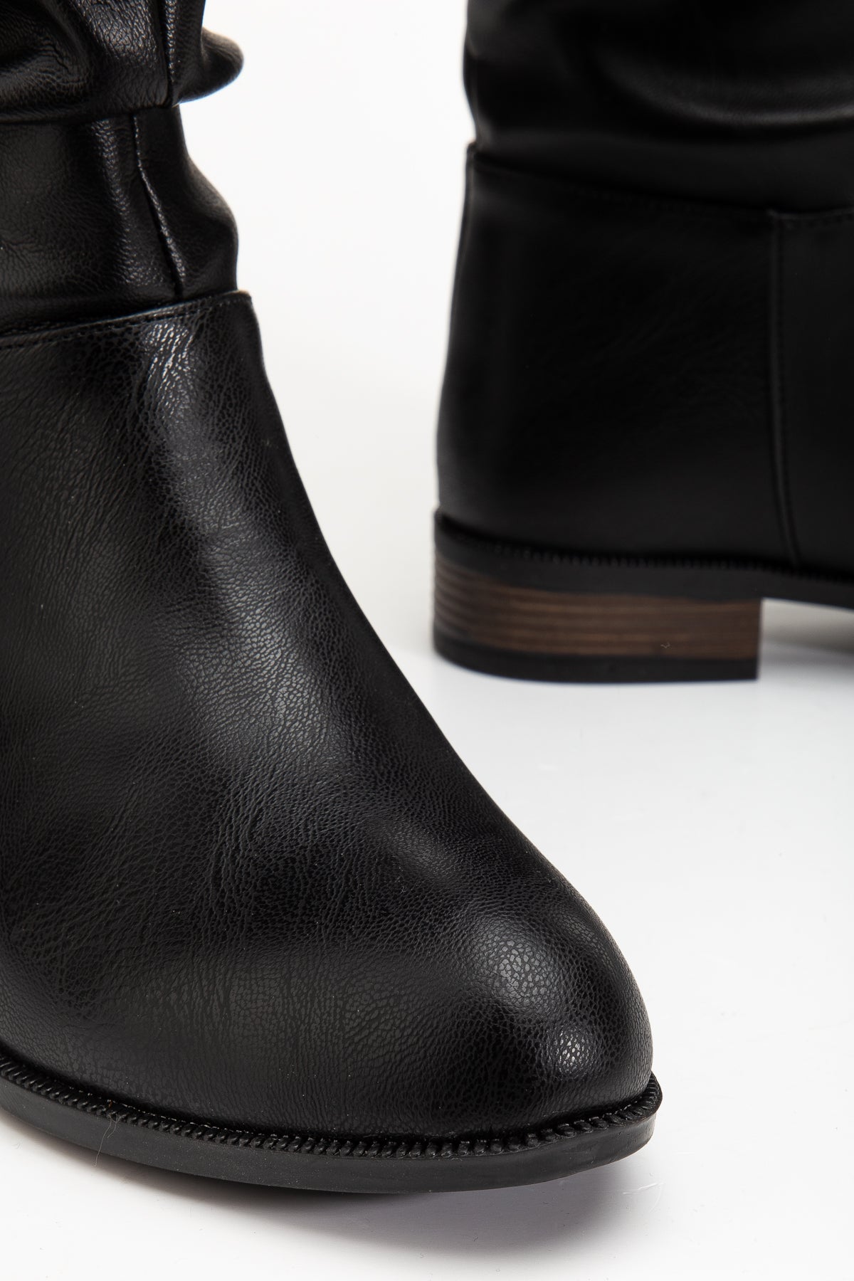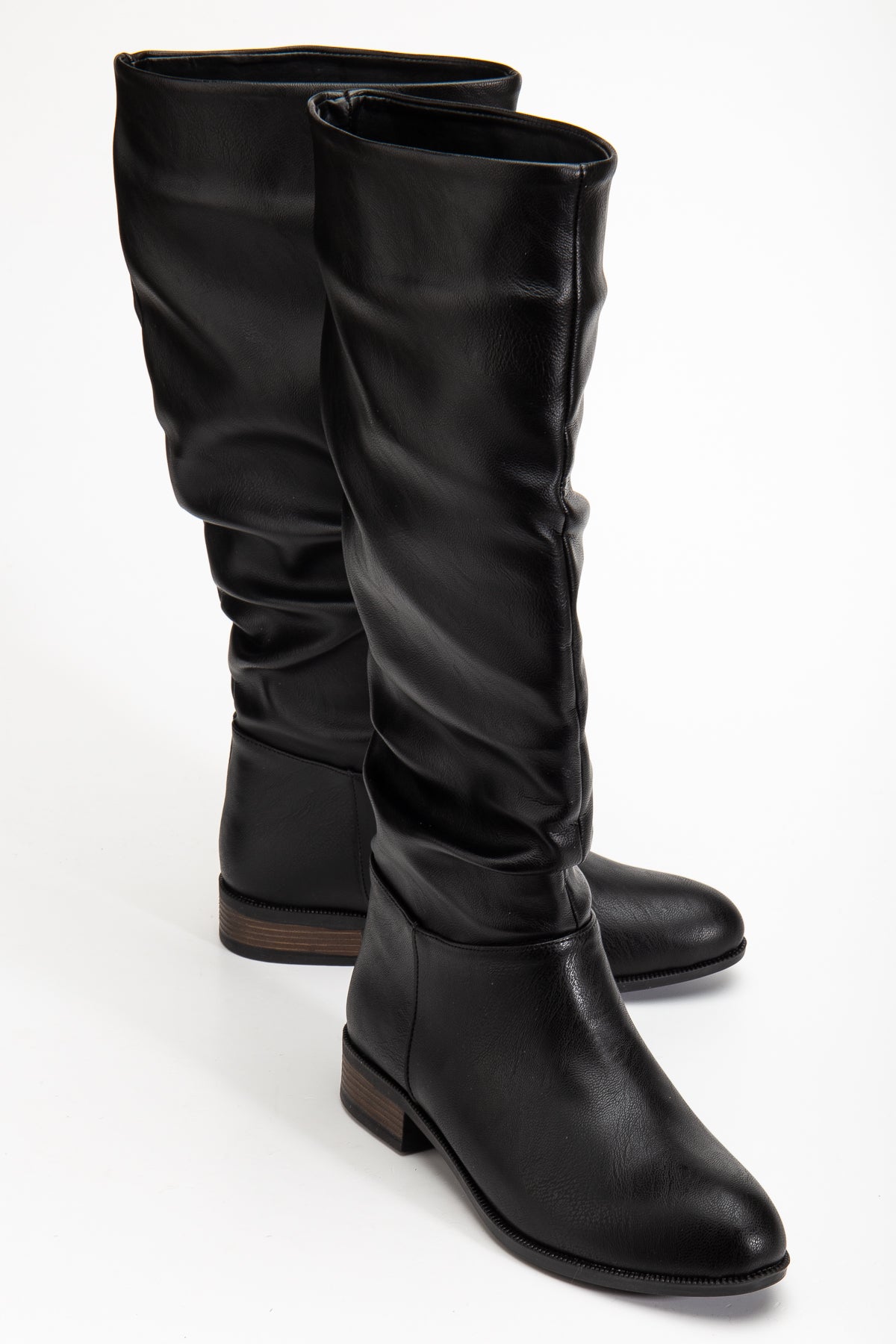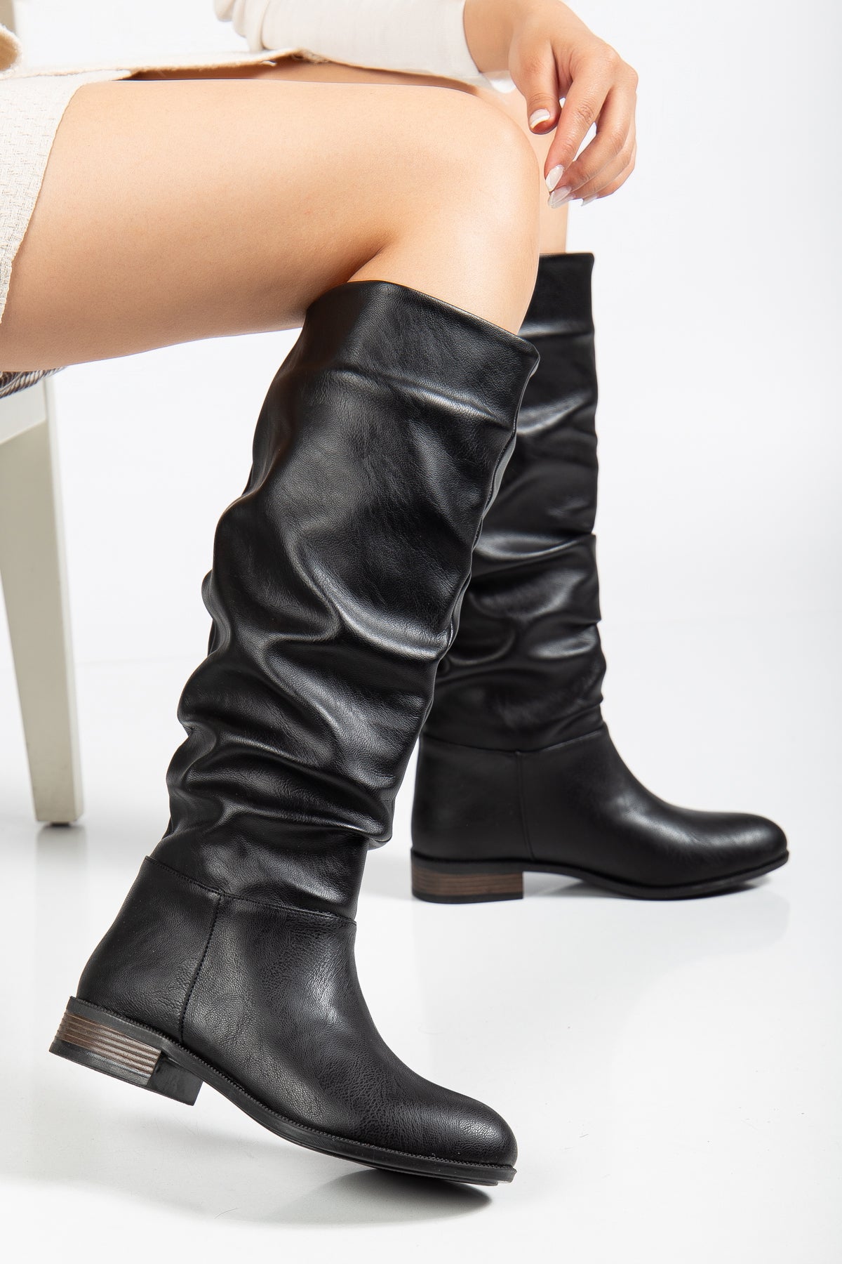 Kadın Yuvarlak Burun Körüklü Günlük Çizme Stela Siyah Cilt