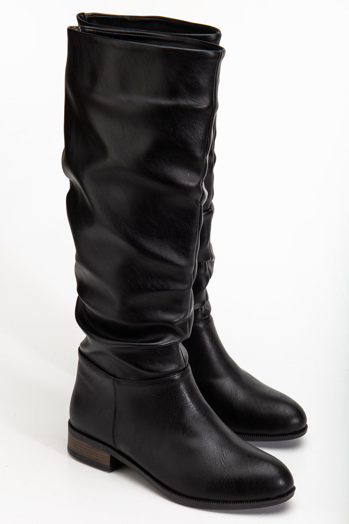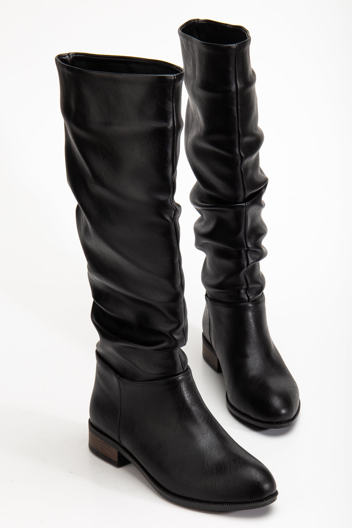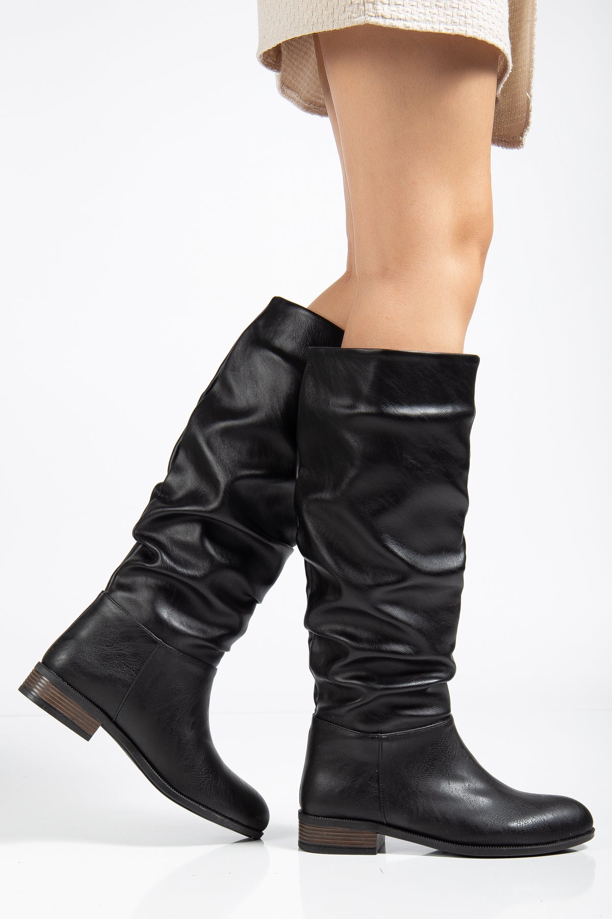 Kadın Yuvarlak Burun Körüklü Günlük Çizme Stela Siyah Cilt