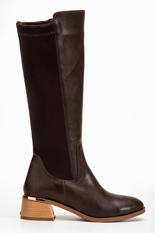 Kadın Diz Altı Fermuarlı Streç Lastikli Günlük Çizme Nora Kahve Cilt