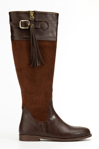 Kadın Diz Altı Altın Toka Detaylı Fermuarlı Günlük Çizme Lina Kahve Süet