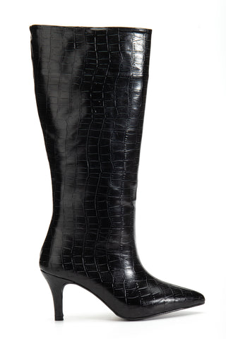 Kadın Günlük Fermuarlı Diz Altı Kalın Tırtıklı Taban Çizme Linn Siyah