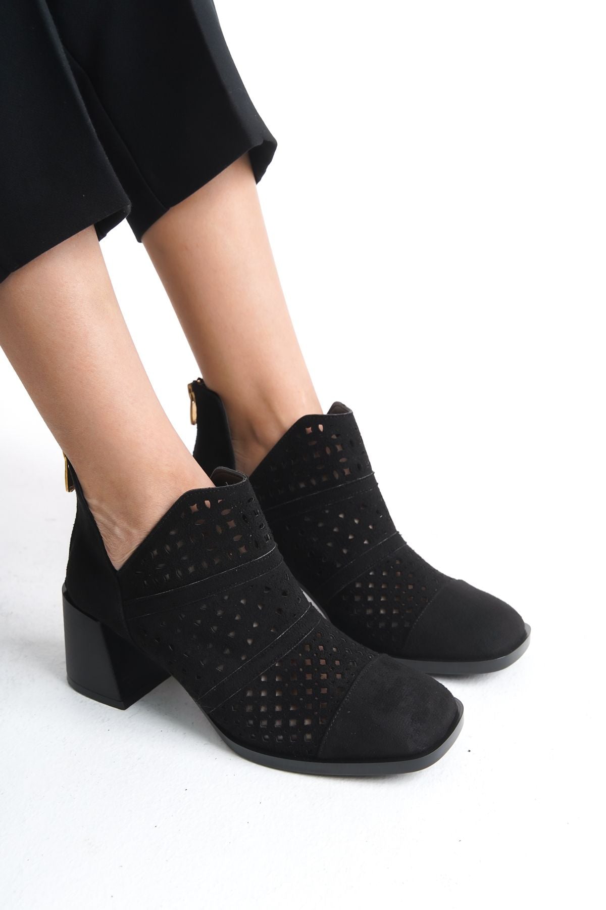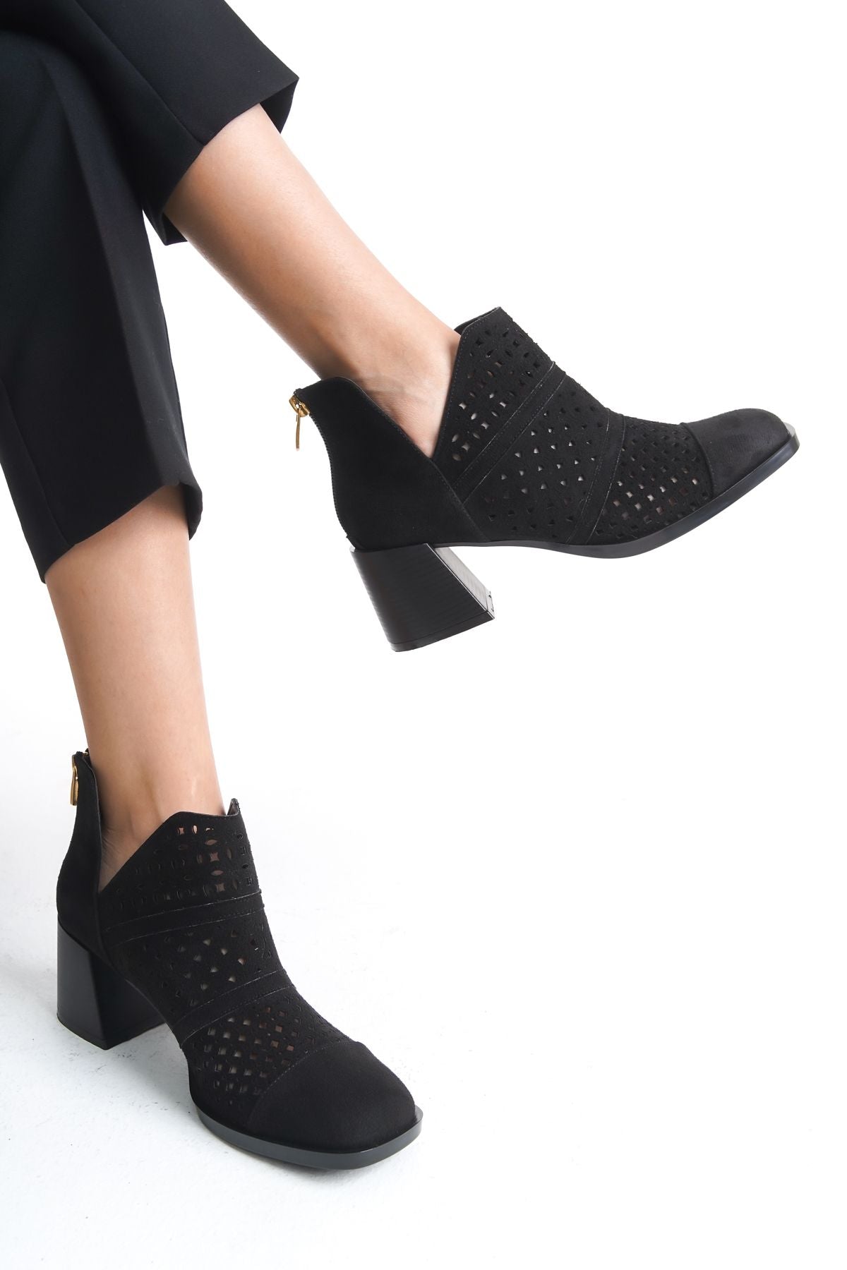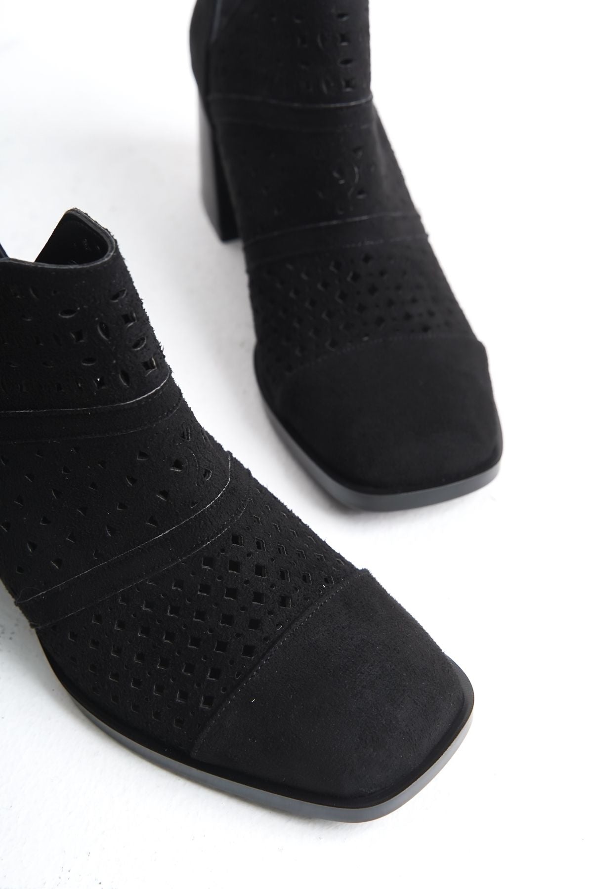 Kadın Şık Küt Burun Delikli Kalın Topuk Yazlık Bot Breezy Siyah
