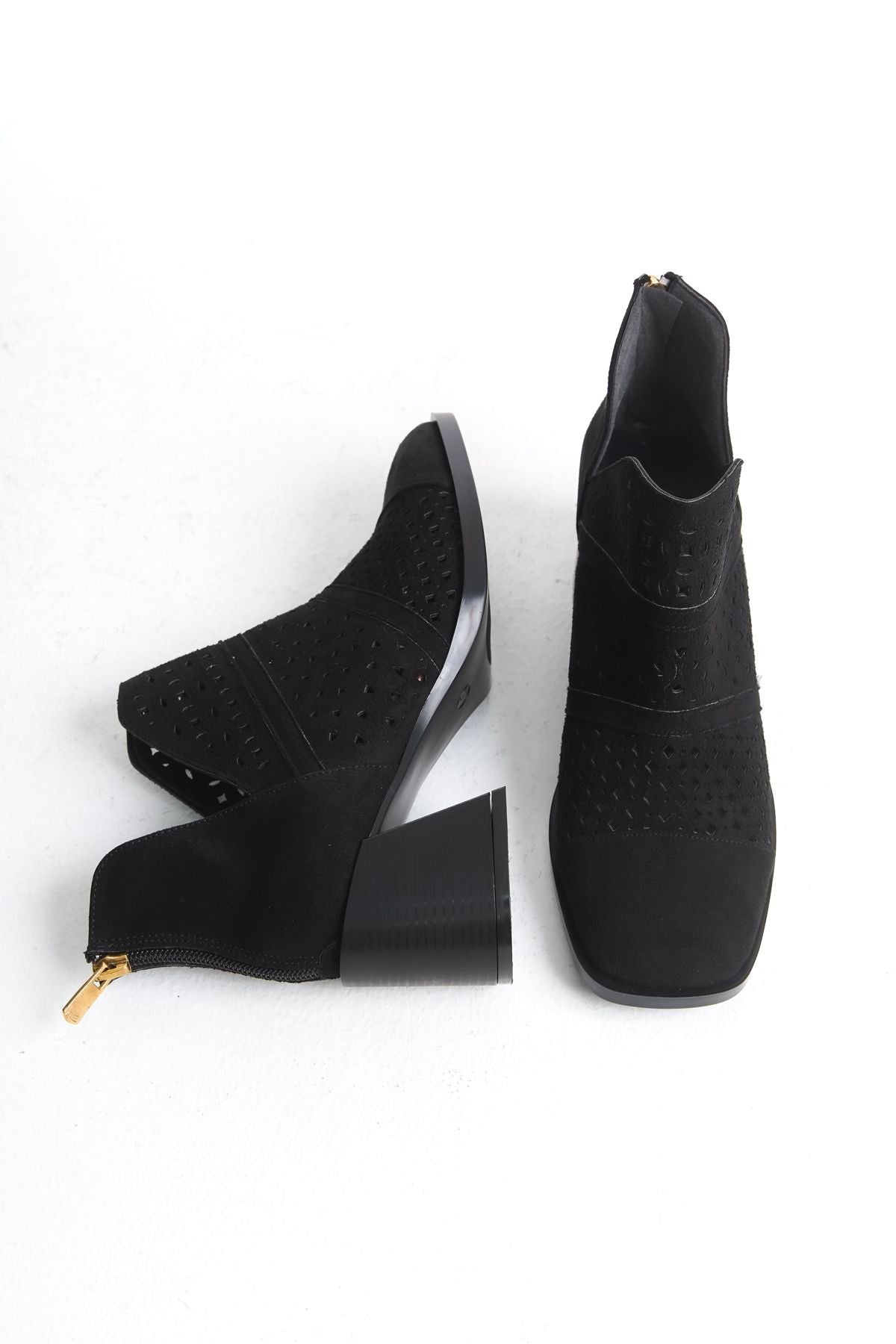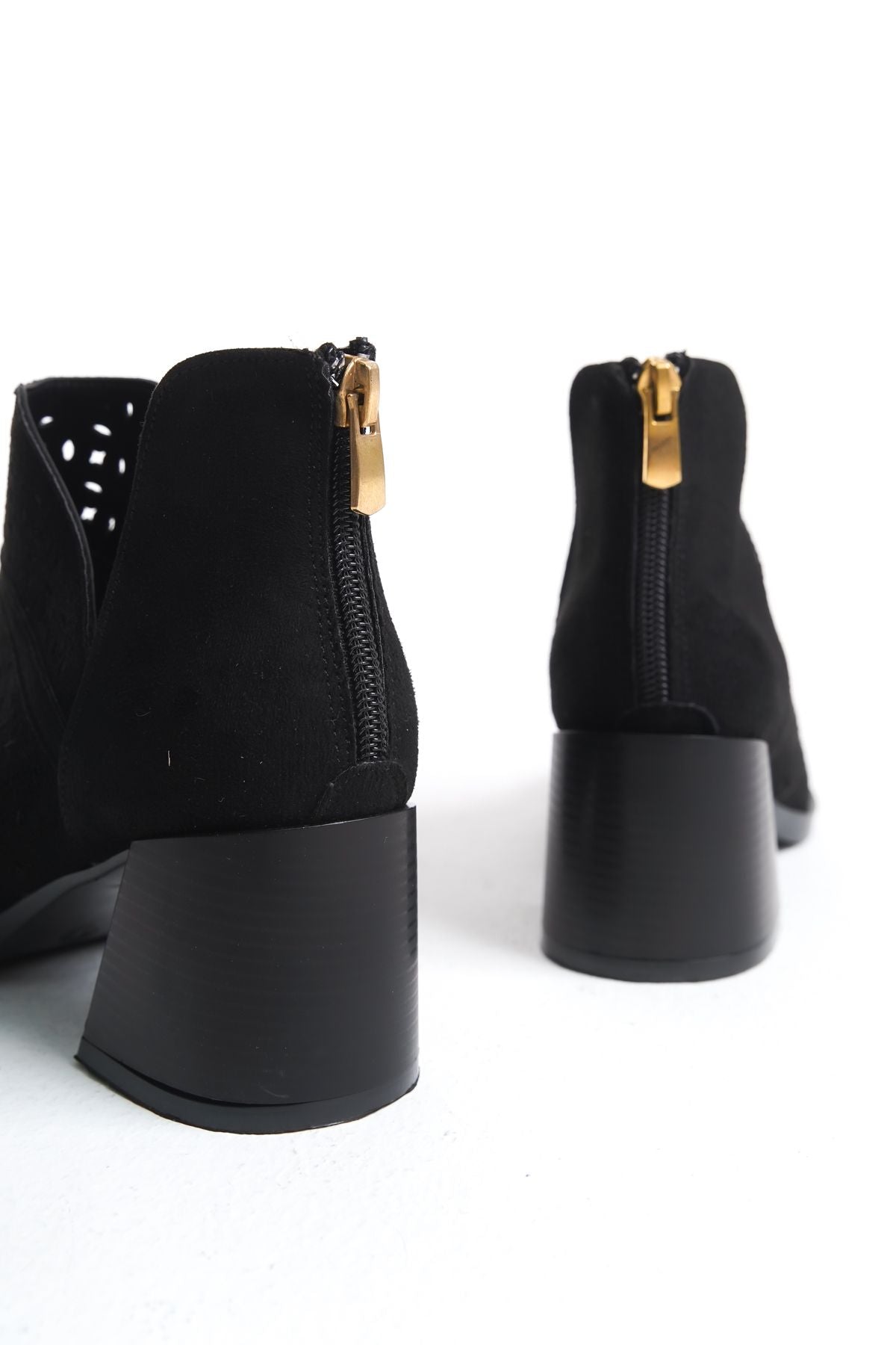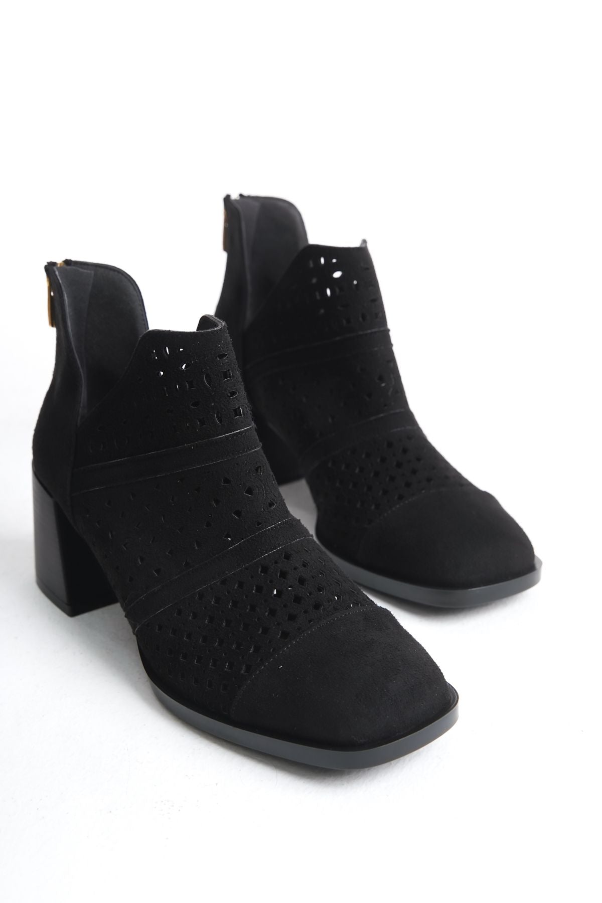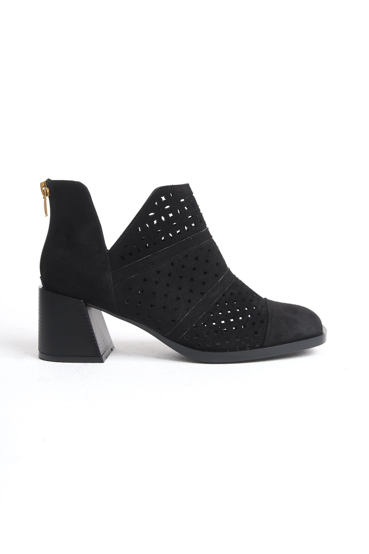 Kadın Şık Küt Burun Delikli Kalın Topuk Yazlık Bot Breezy Siyah