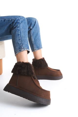 Kadın Yuvarlak Burun Çift Lastikli Günlük Bot Ezra Taba Süet