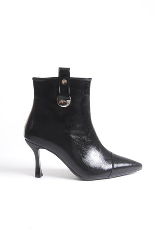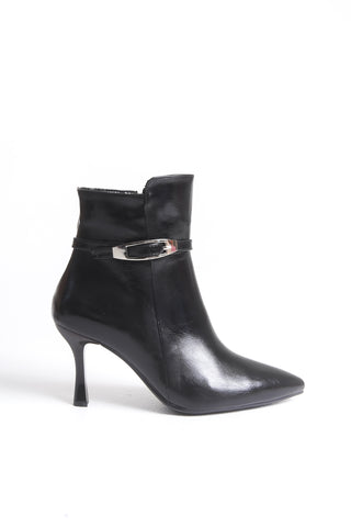 Kadın Yandan Fermuarlı Toka Detaylı Kalın Topuklu Sivri Burunlu Günlük Bot Jura Siyah