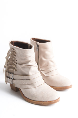 Kadın Kalın Topuk Yuvarlak Burun Fermuarlı Pantolon Bot Davina Bej Süet