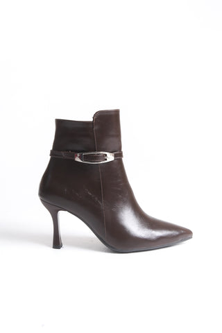 Kadın Sivri Burun Fermuarlı Günlük Bot Ruva Kahve Rugan