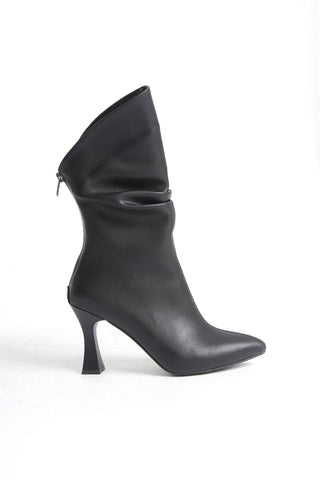 Kadın Topuklu Sivri Burun Körüklü Arkadan Fermuarlı Kadeh Ökçe Bot Sara Siyah