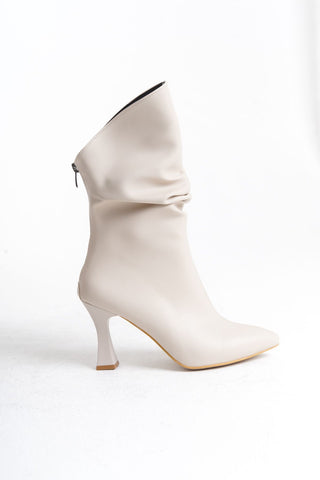 Kadın Topuklu Sivri Burun Körüklü Arkadan Fermuarlı Kadeh Ökçe Bot Sara Bej