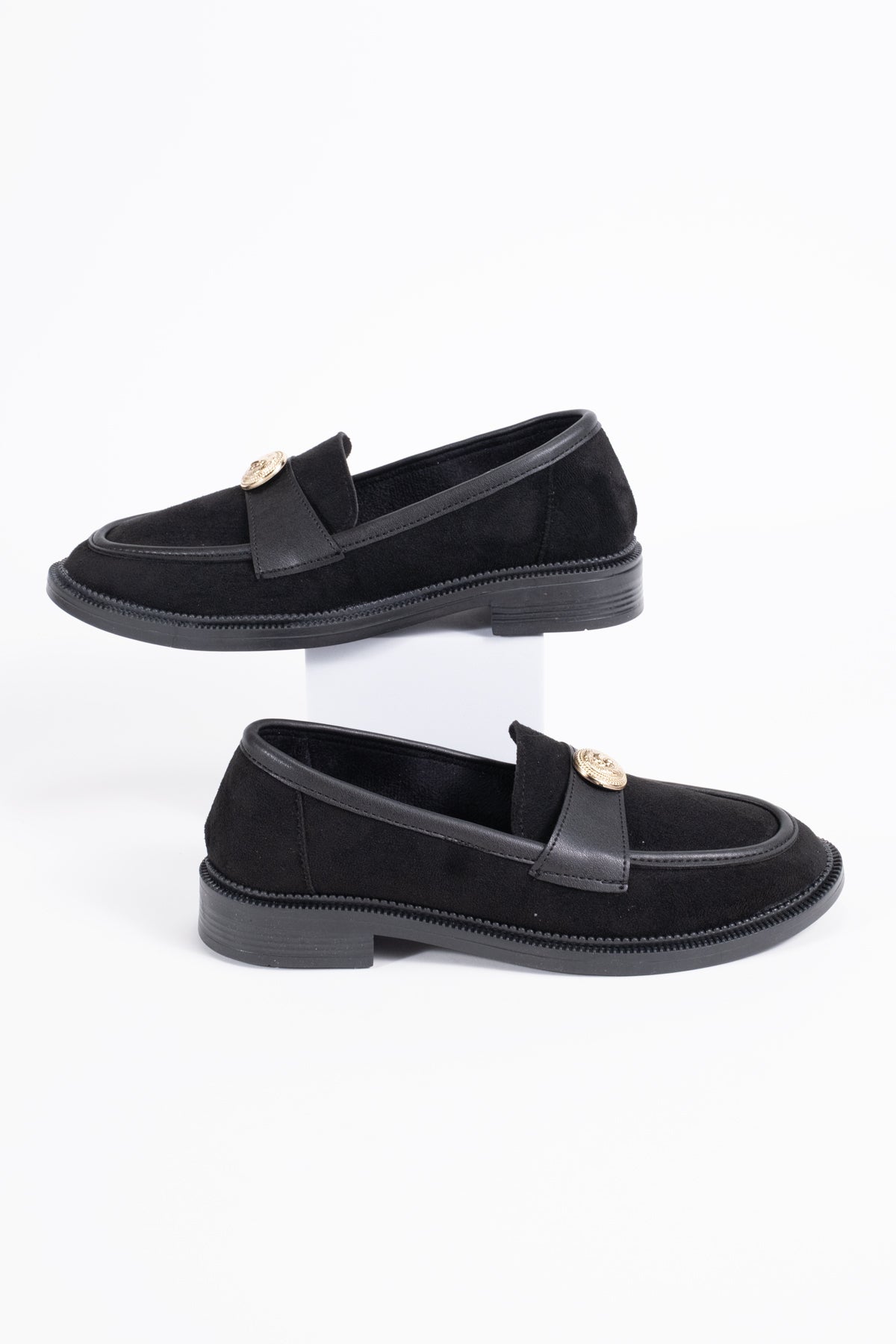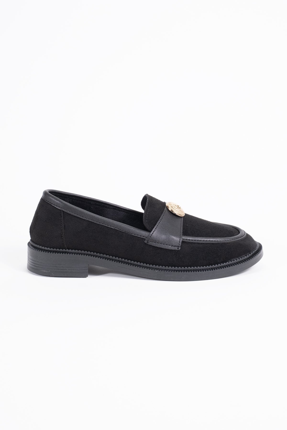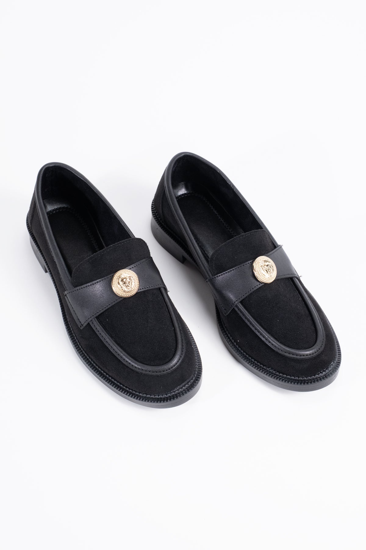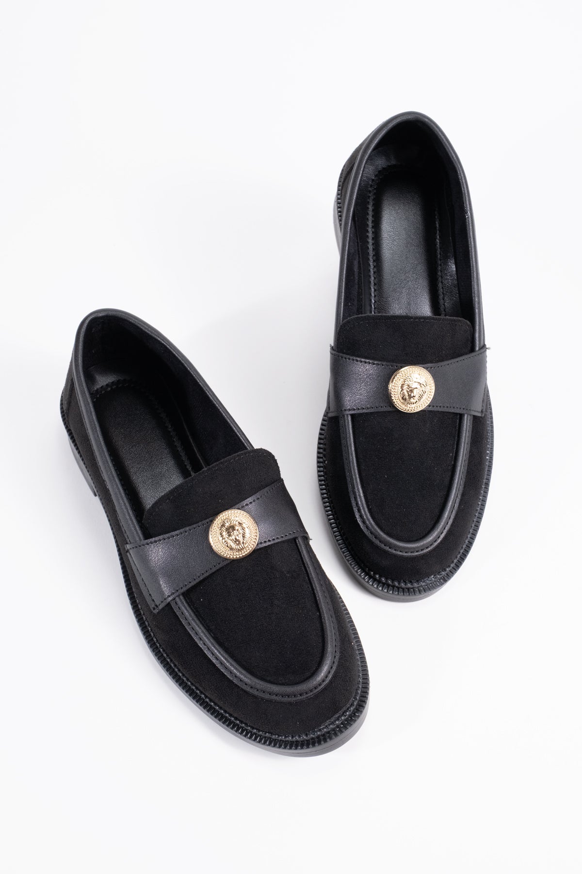 Kadın Loafer Makosen Casual Gold Aksesuar Detaylı Günlük Ayakkabı Mircea Siyah Süet