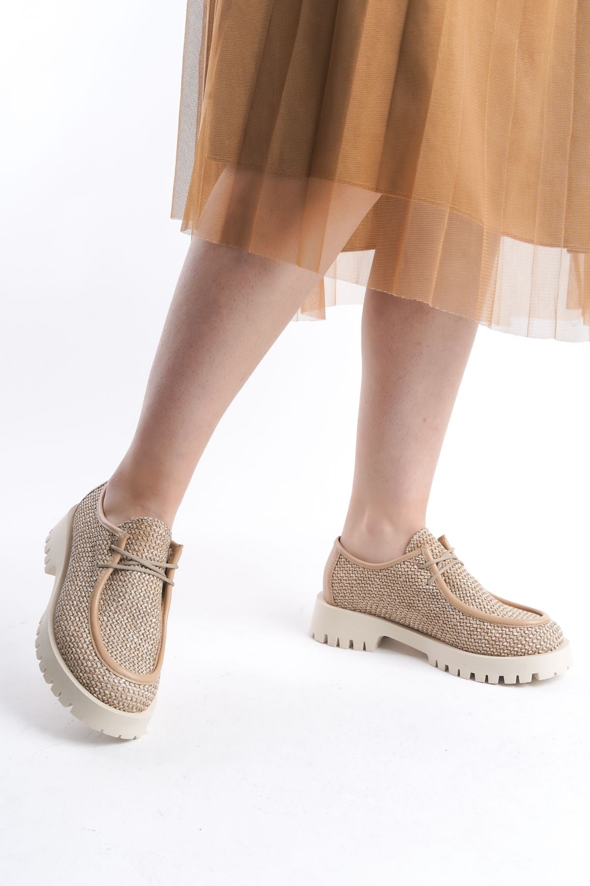 Kadın Loafer Makosen Casuel Bağcıklı Günlük Ayakkabı Petra Bej