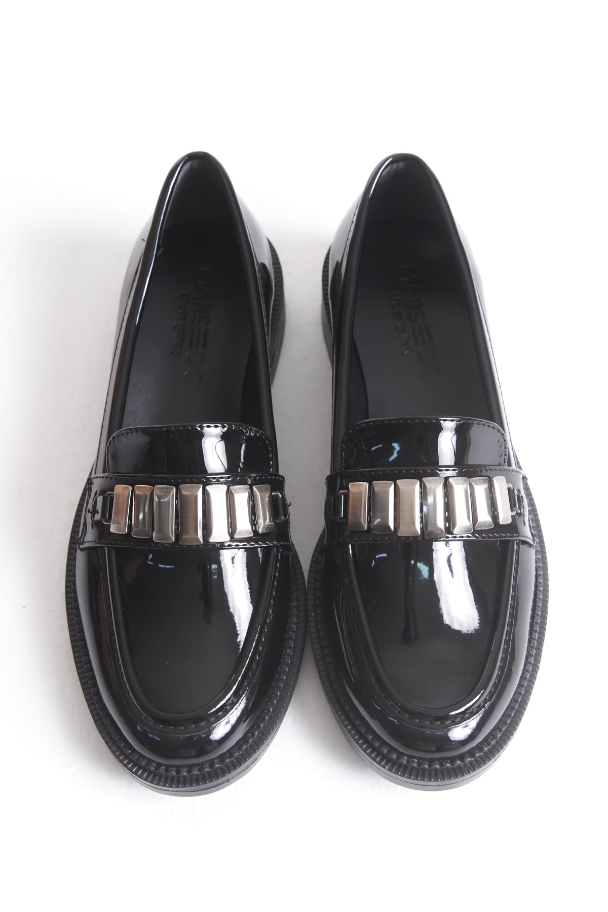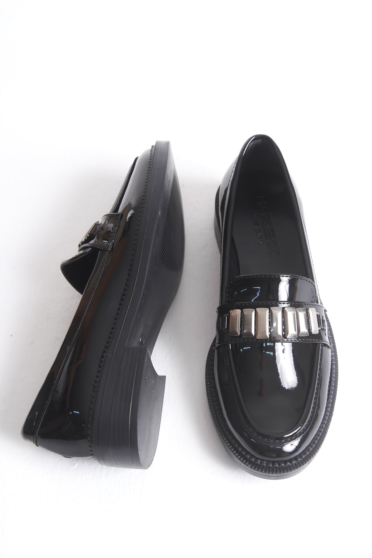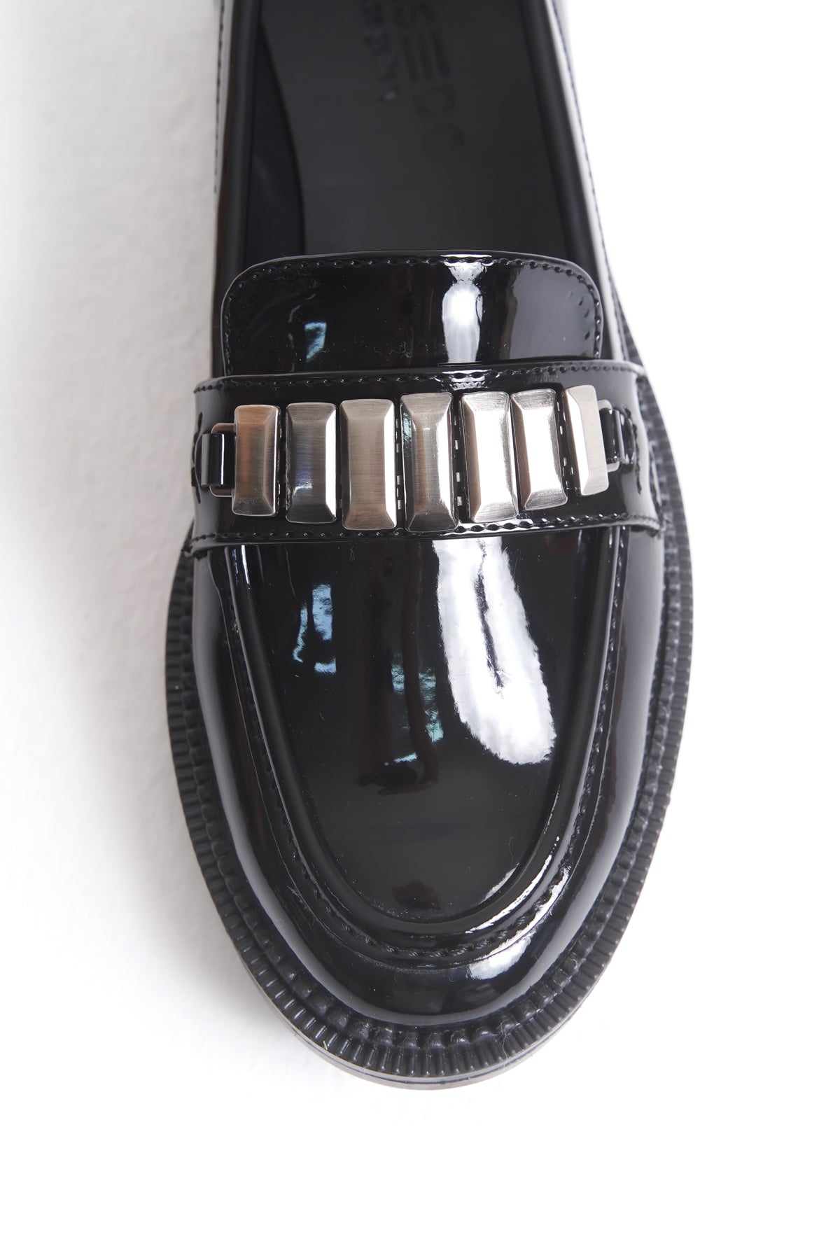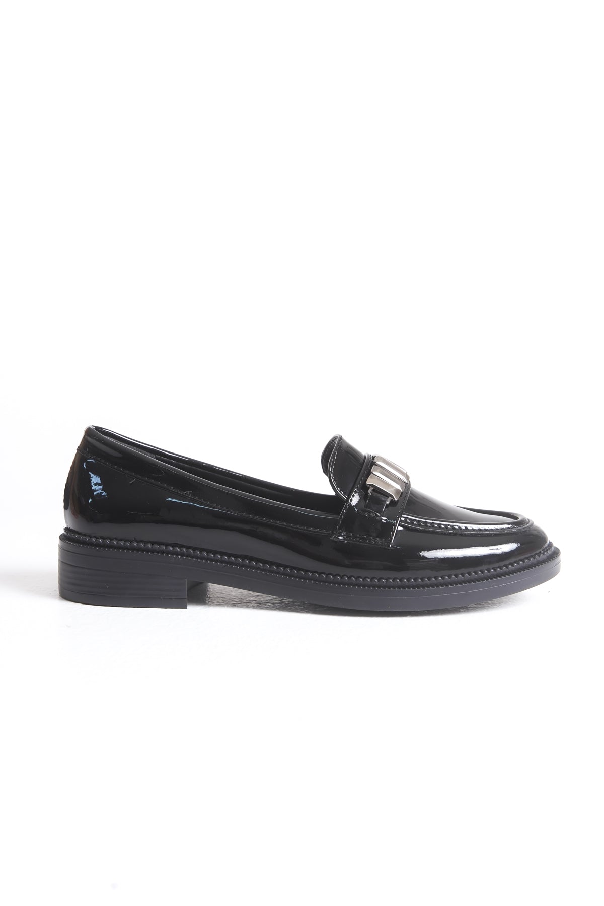 Kadın Loafer Makosen Tokalı Klasik Ayakkabı Elen Siyah Rugan