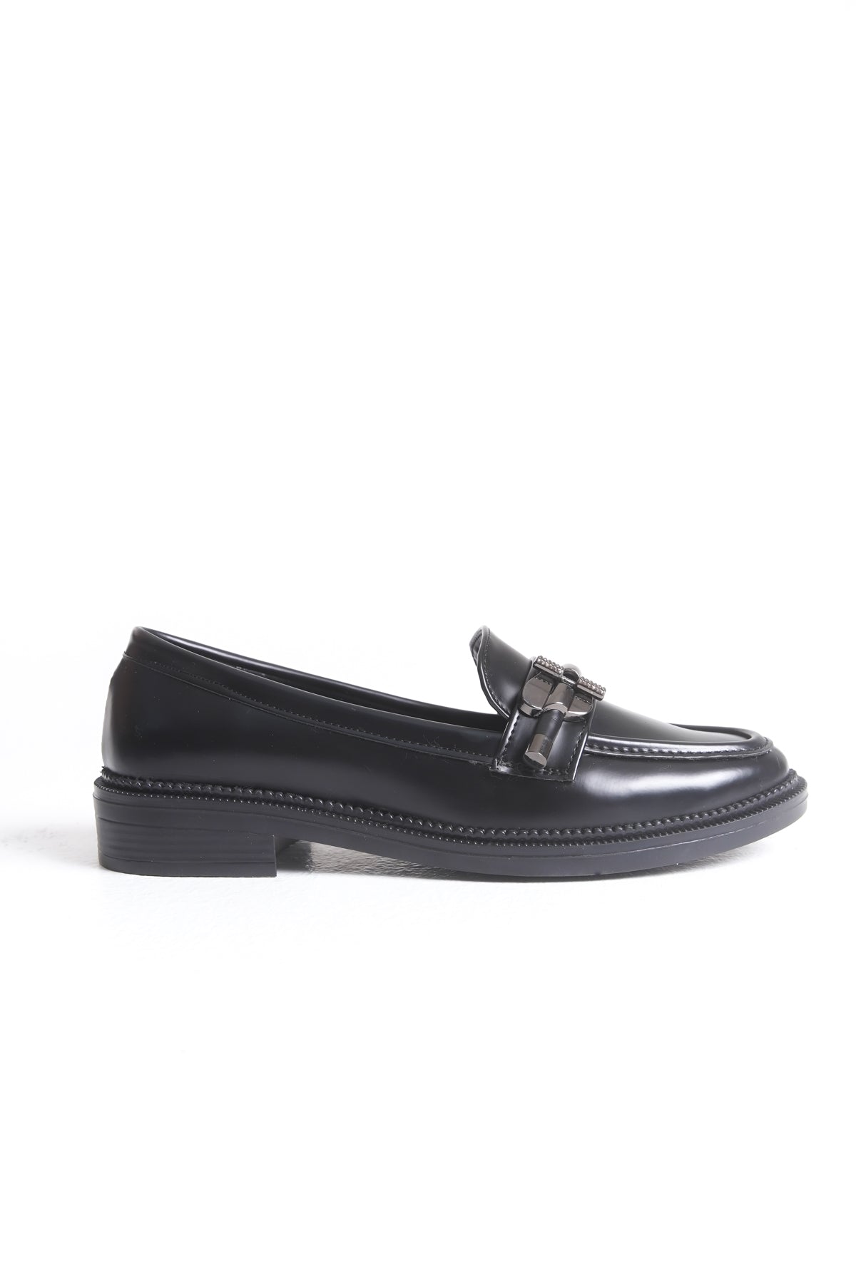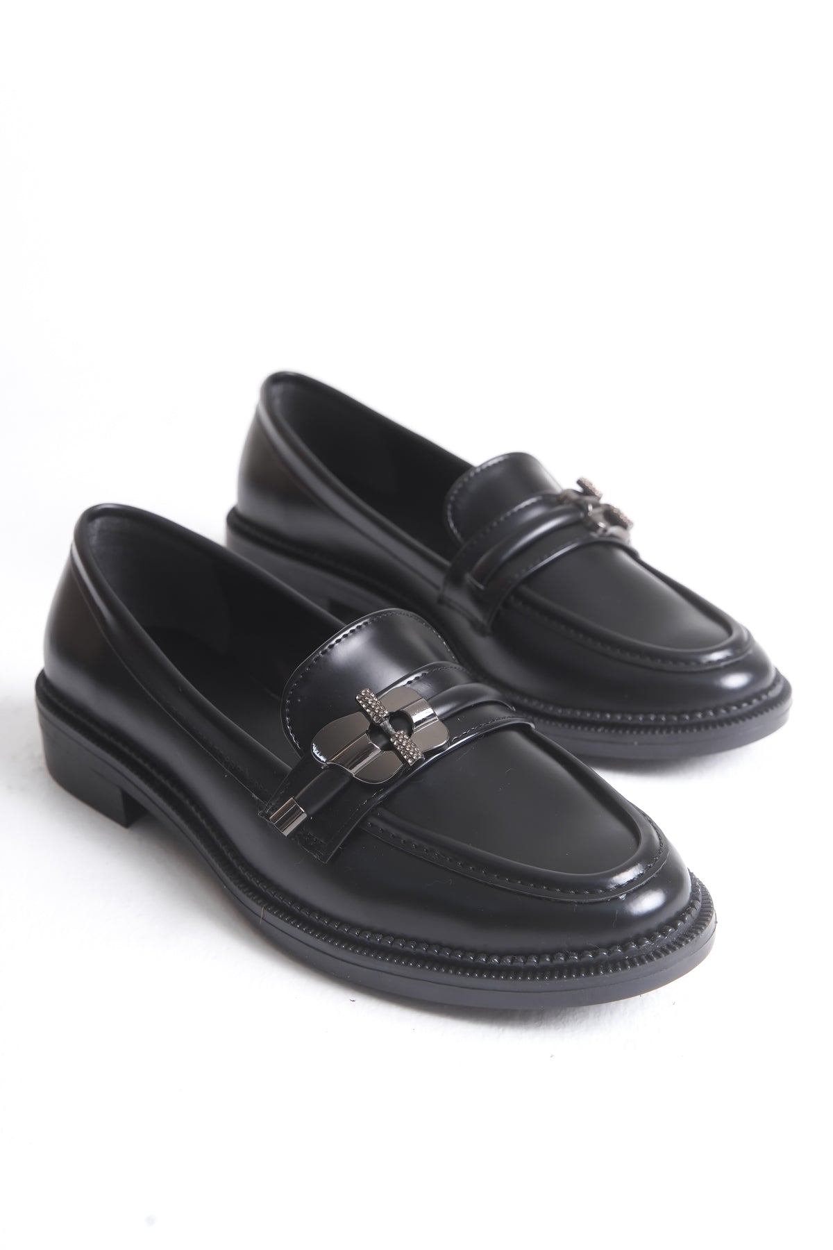 Kadın Loafer Makosen Tokalı Klasik Ayakkabı Naya Siyah Cilt
