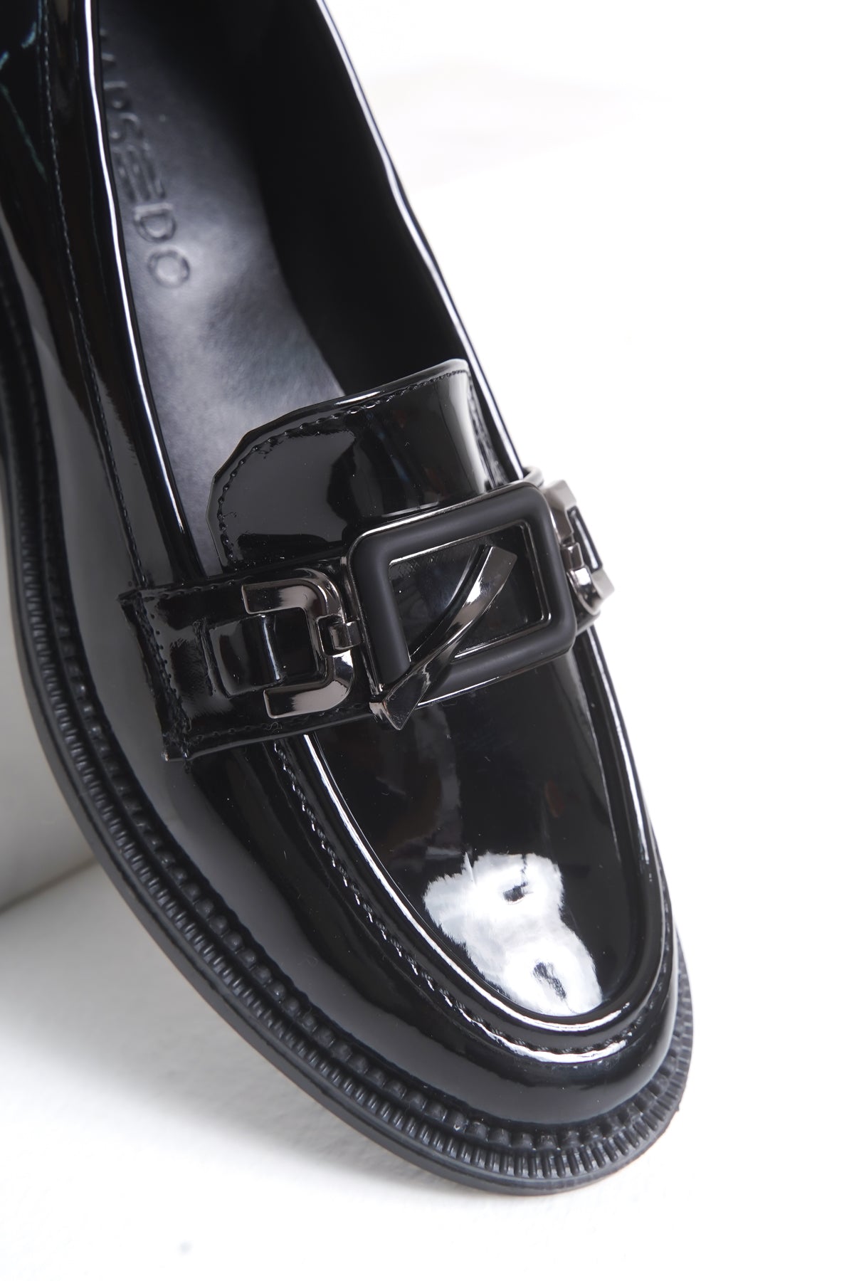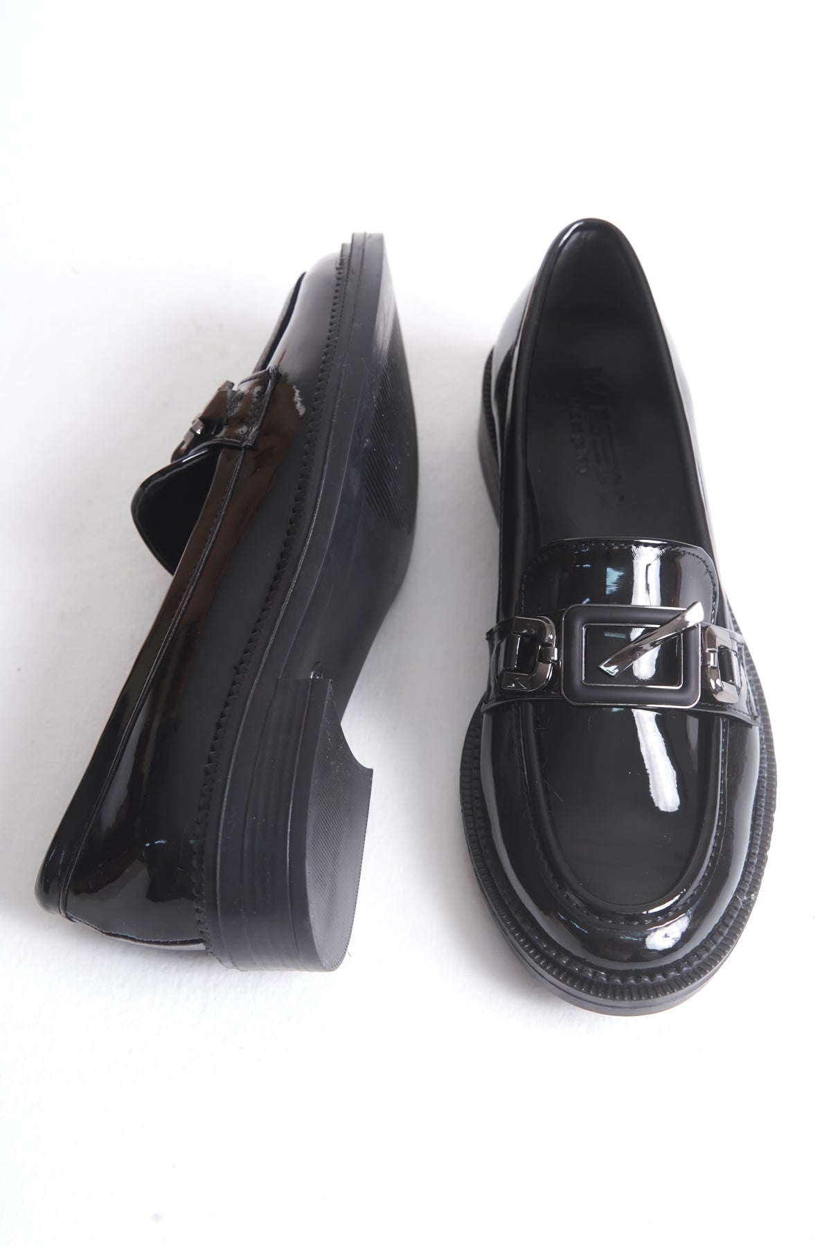 Kadın Loafer Makosen Tokalı Klasik Ayakkabı Olia Siyah Rugan