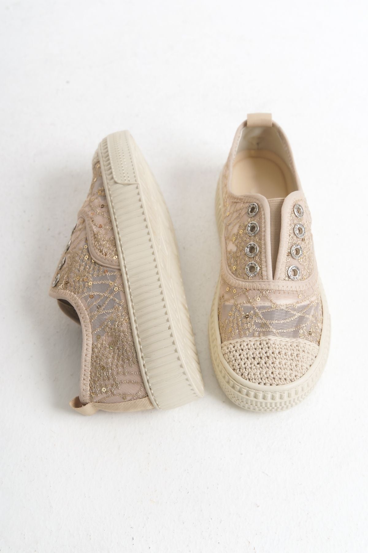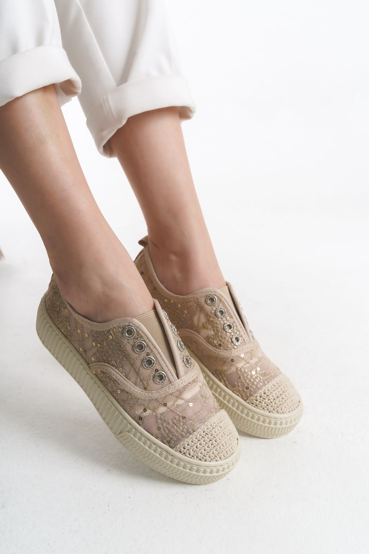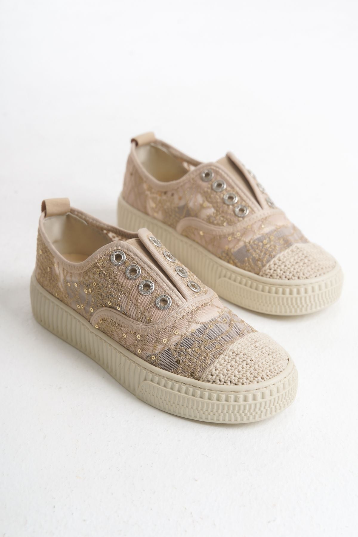 Romantik ve zarif dantel detayları, file dokusu ile birleşerek hem estetik hem de hava alabilen bir yapı sunar. Bu sayede ayaklarınız uzun süreli kullanımlarda bile ferah kalır.