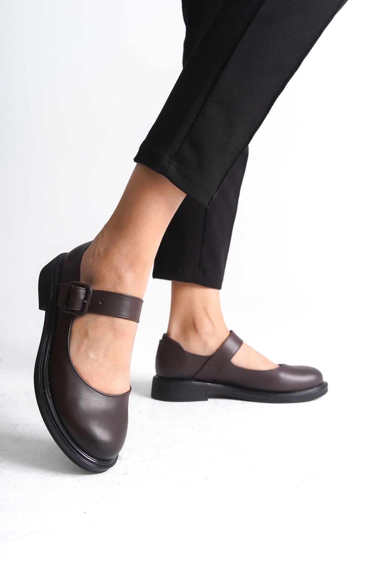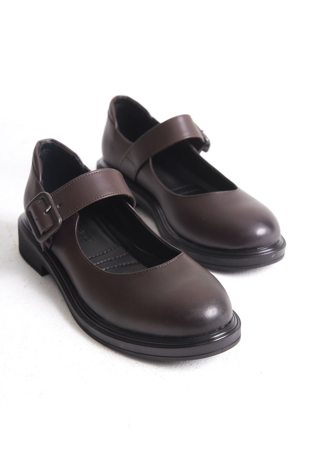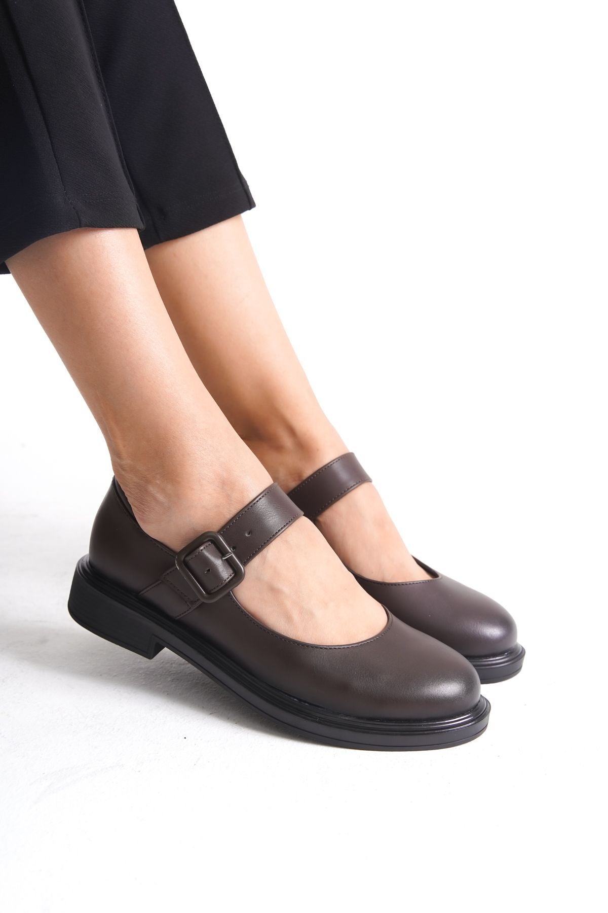 Marie Kadın Loafer Makosen Casuel Tokalı Bantlı Günlük Ayakkabı Kahve