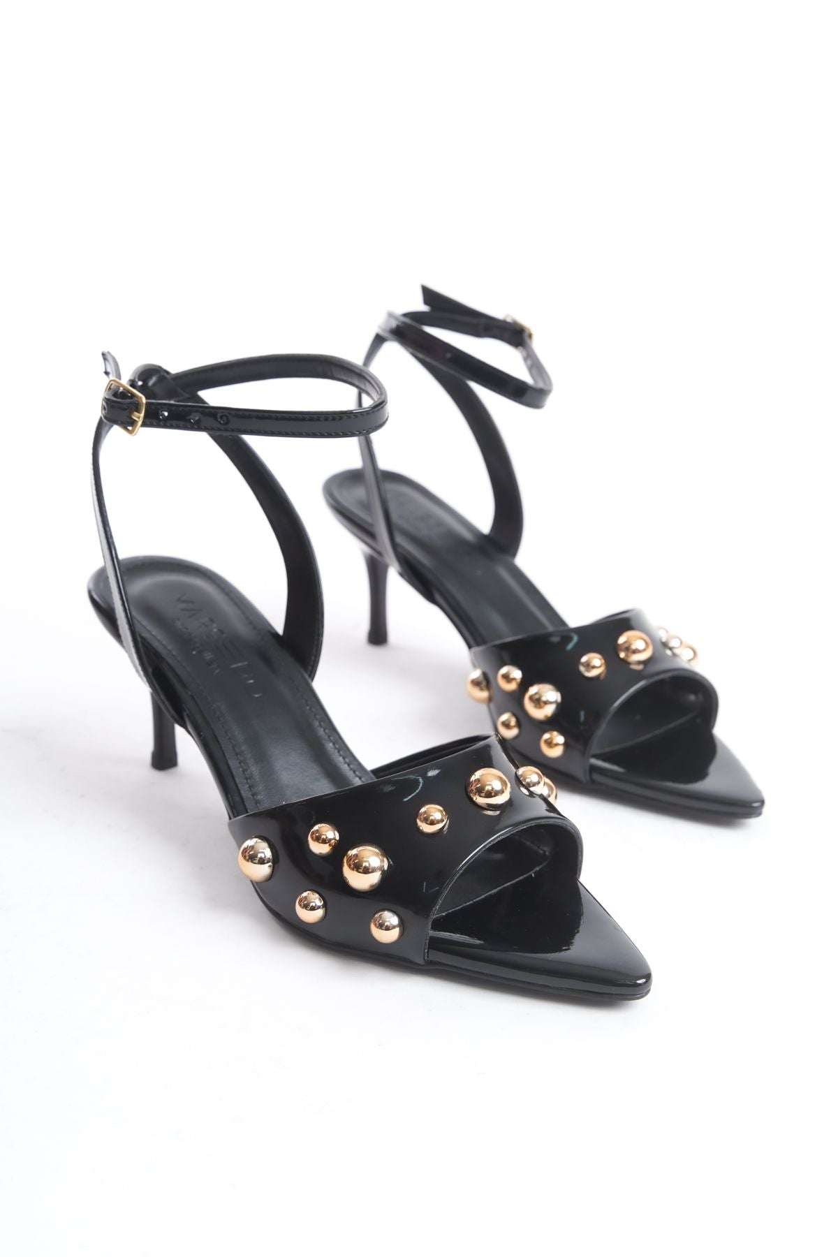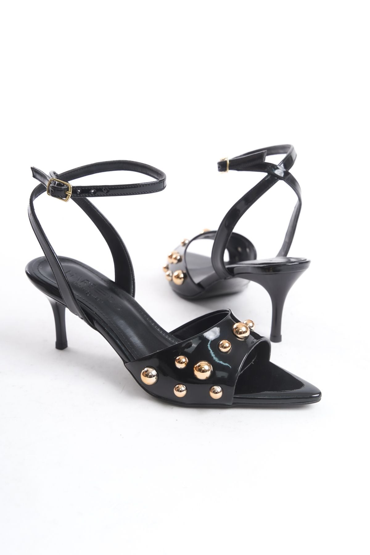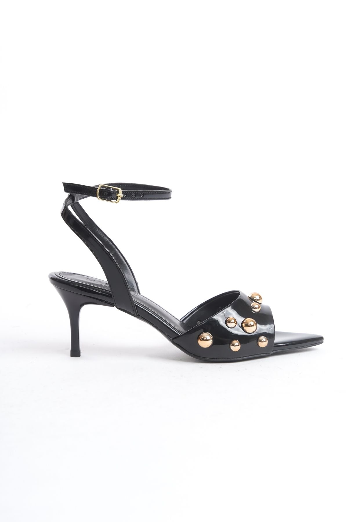 Kadın Sivri Burun Bantlı Bilekten Bağlamalı Topuklu Sandalet Grade Siyah