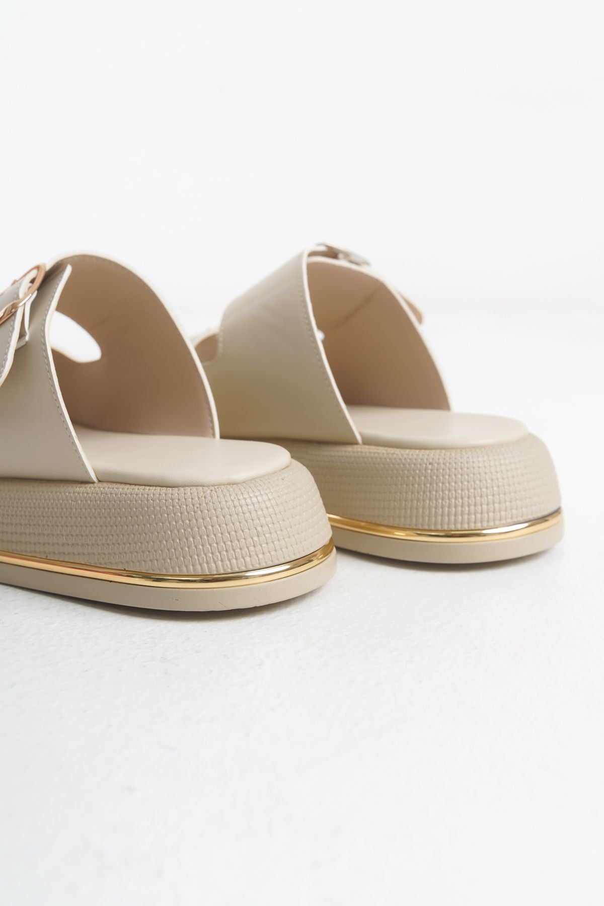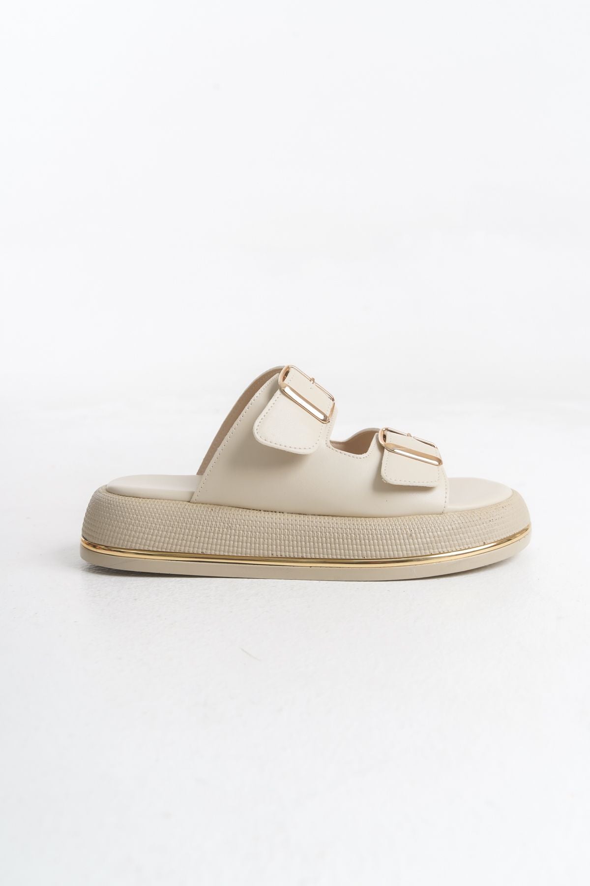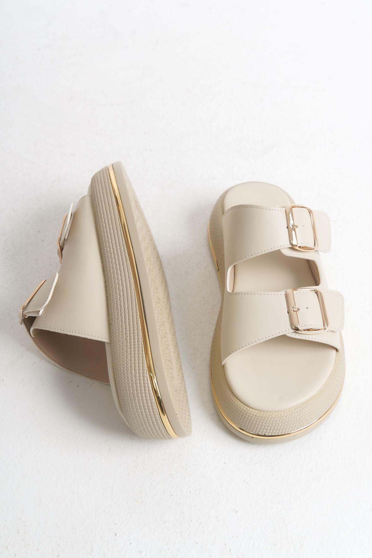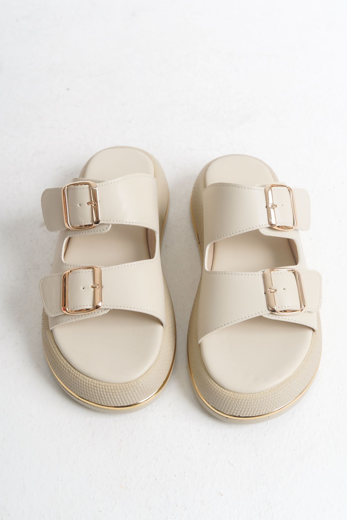 Leila Kadın Günlük Çift Bantlı Tokalı Poli Hafif Taban Terlik