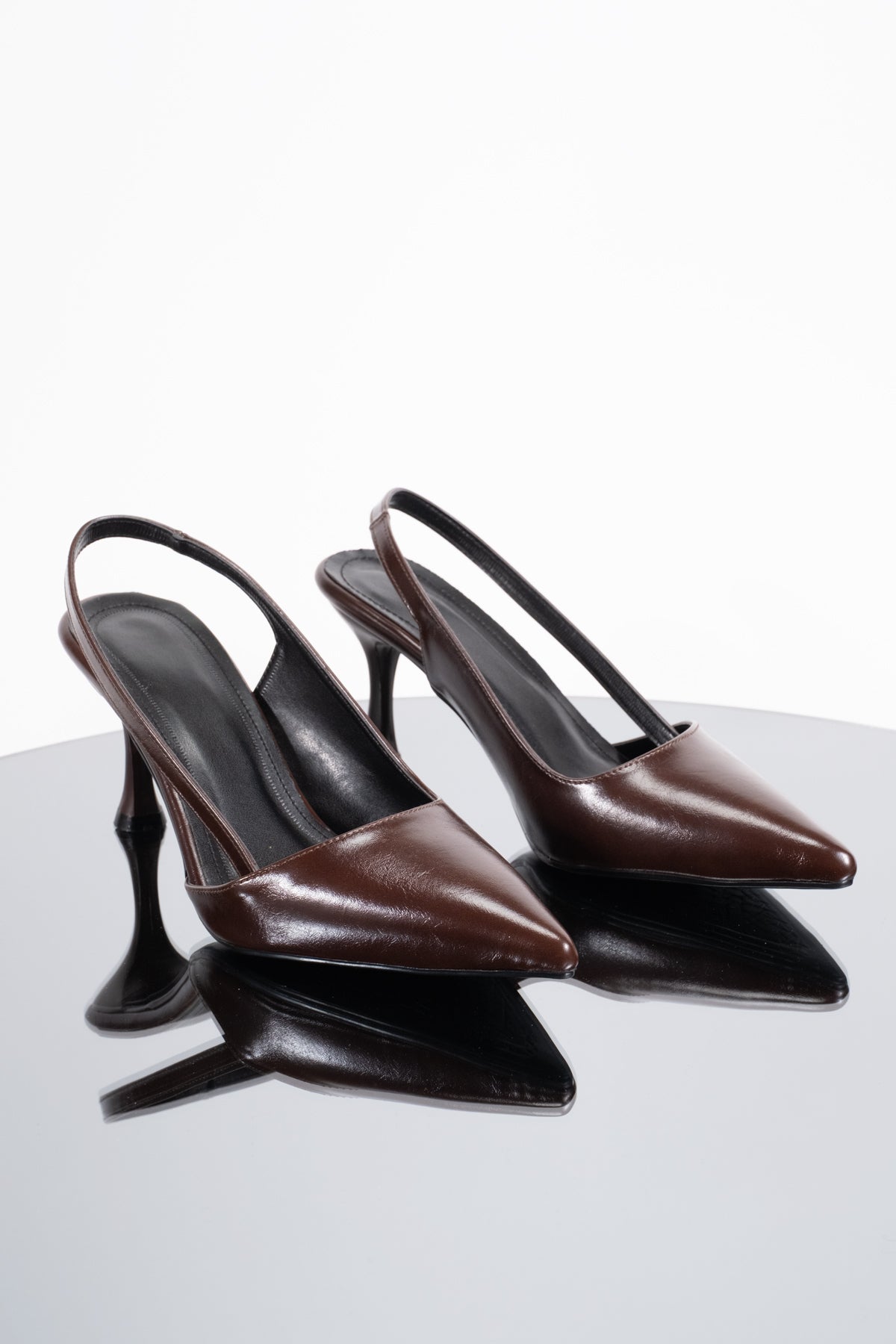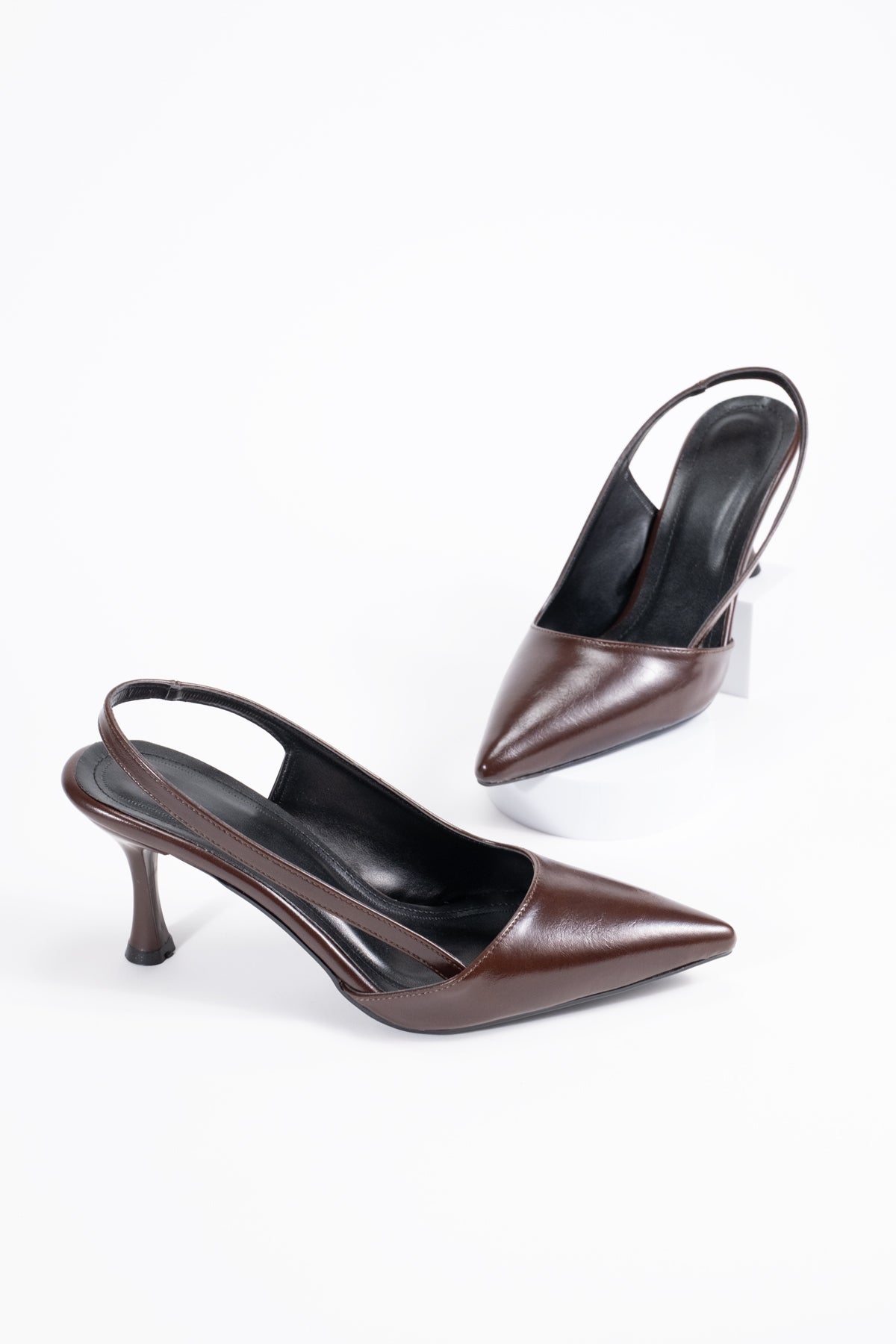 Kadın Stiletto Sivri Burun Arkası Açık Topuklu Ayakkabı Davida – Kahve