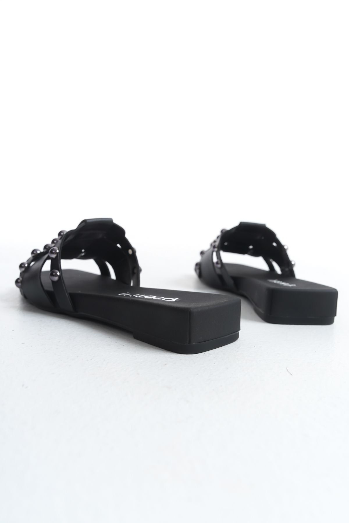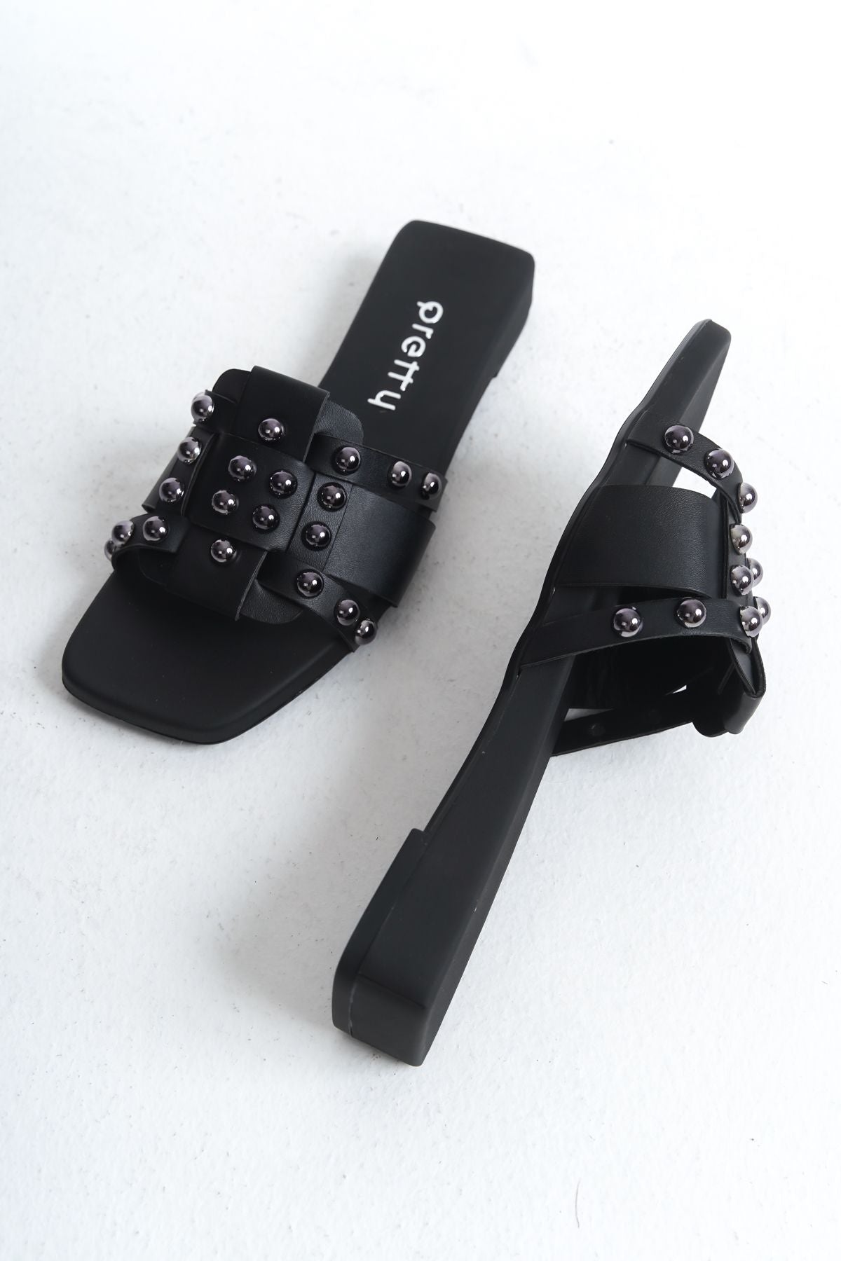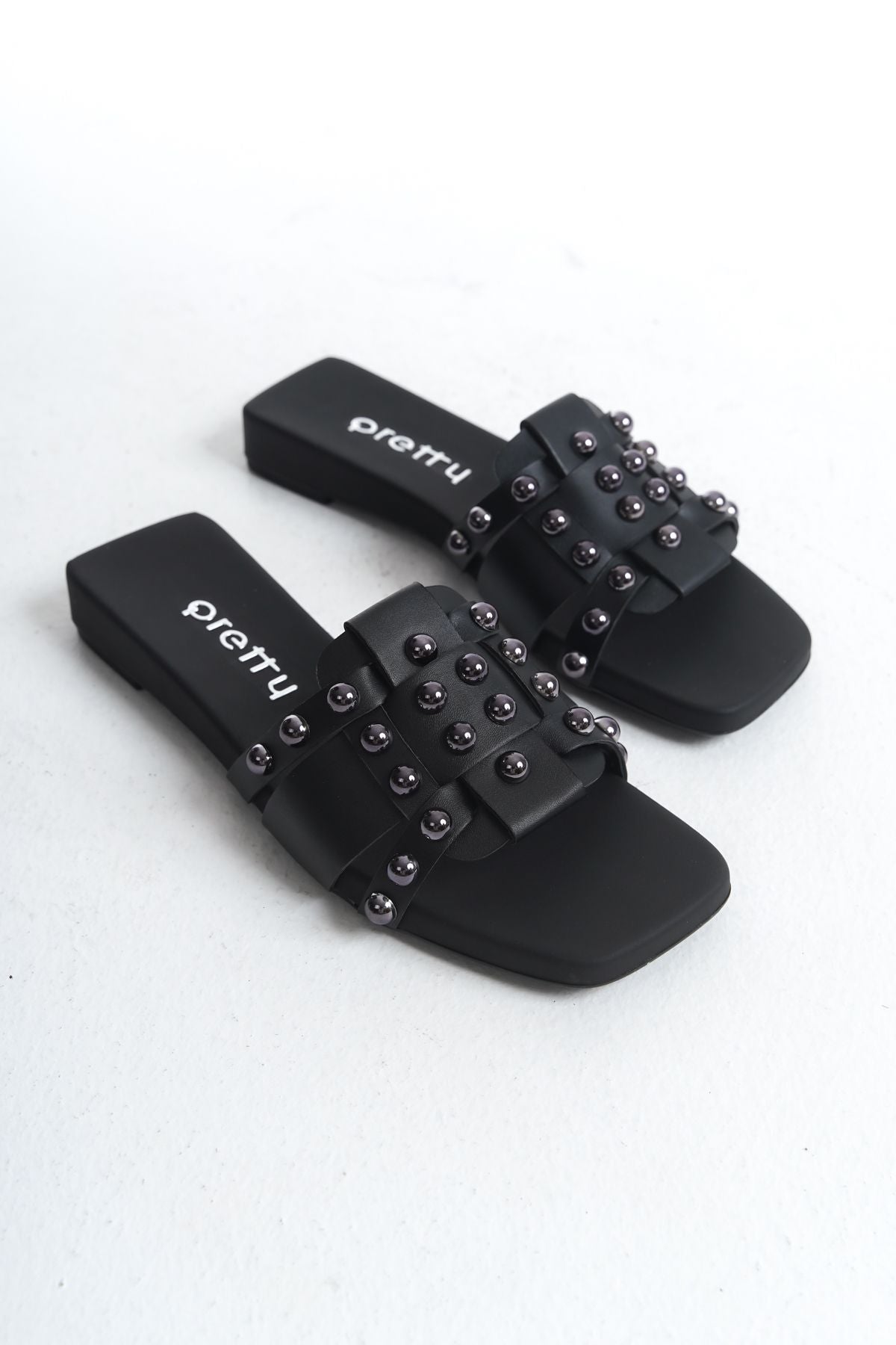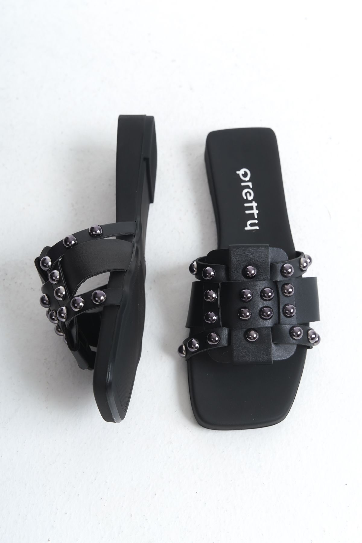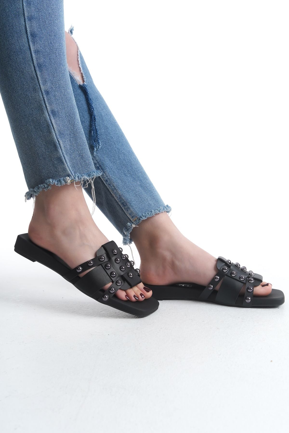 Kadın Düz Topuk Zımbalı Günlük Terlik Shaw Siyah