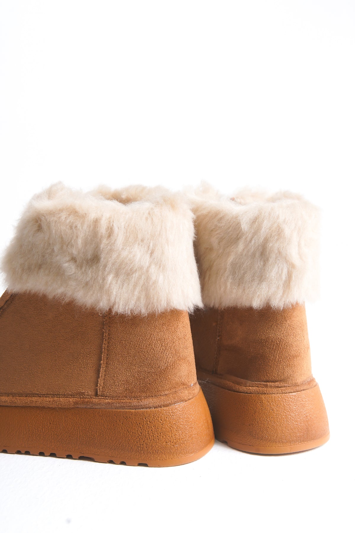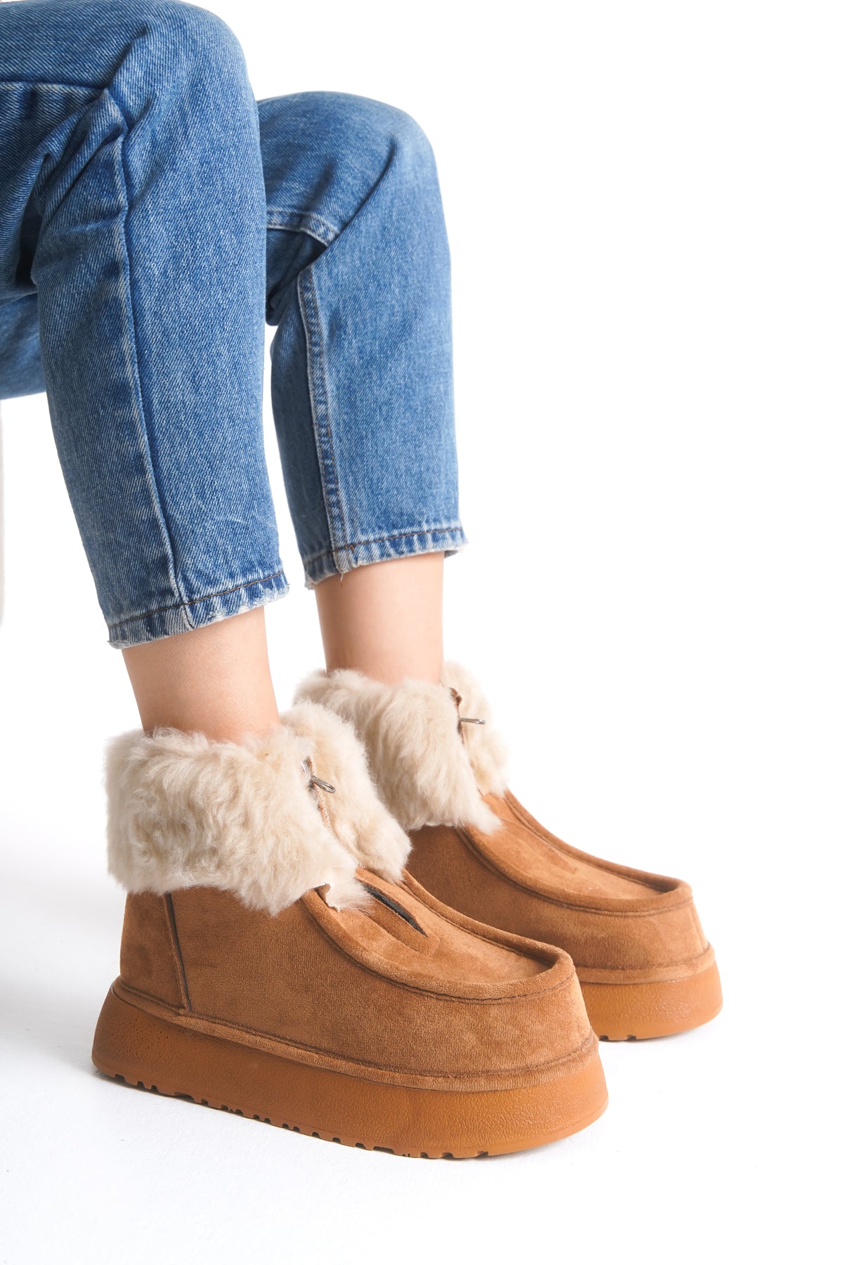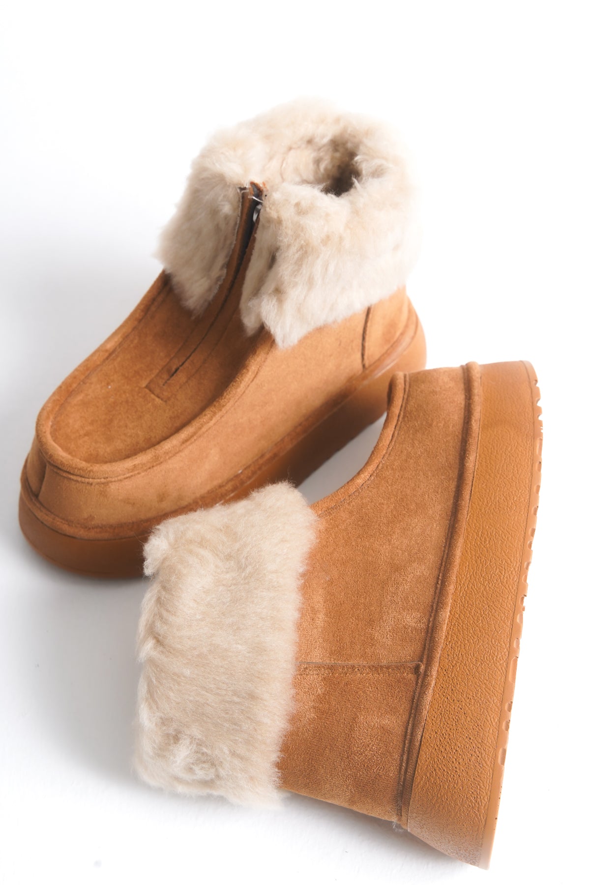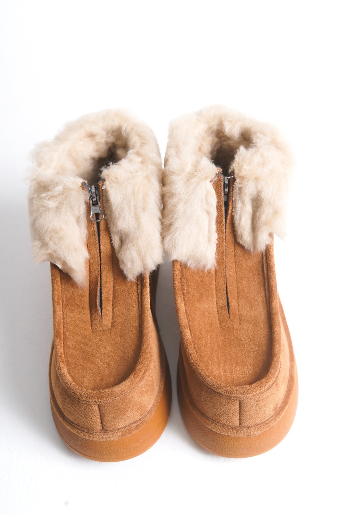Kadın Kürklü Kalın Taban Önden Fermuarlı Günlük Bot Cara Taba Süet