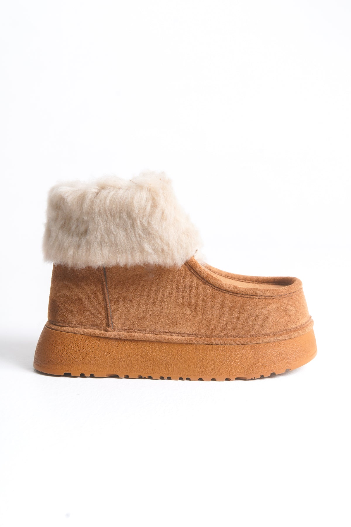 Kürklü iç yapısı sayesinde gün boyu sıcaklık ve yumuşaklık sunar.Kalın taban yapısı, uzun yürüyüşlerde yormaz ve ayakları darbelere karşı korur.Önden fermuarlı tasarımı sayesinde pratik giyilip çıkarılabilir, bağcıkla uğraştırmaz.Hafif ve esnek tabanı ile kışın günlük kullanımda konforu maksimuma çıkarır.