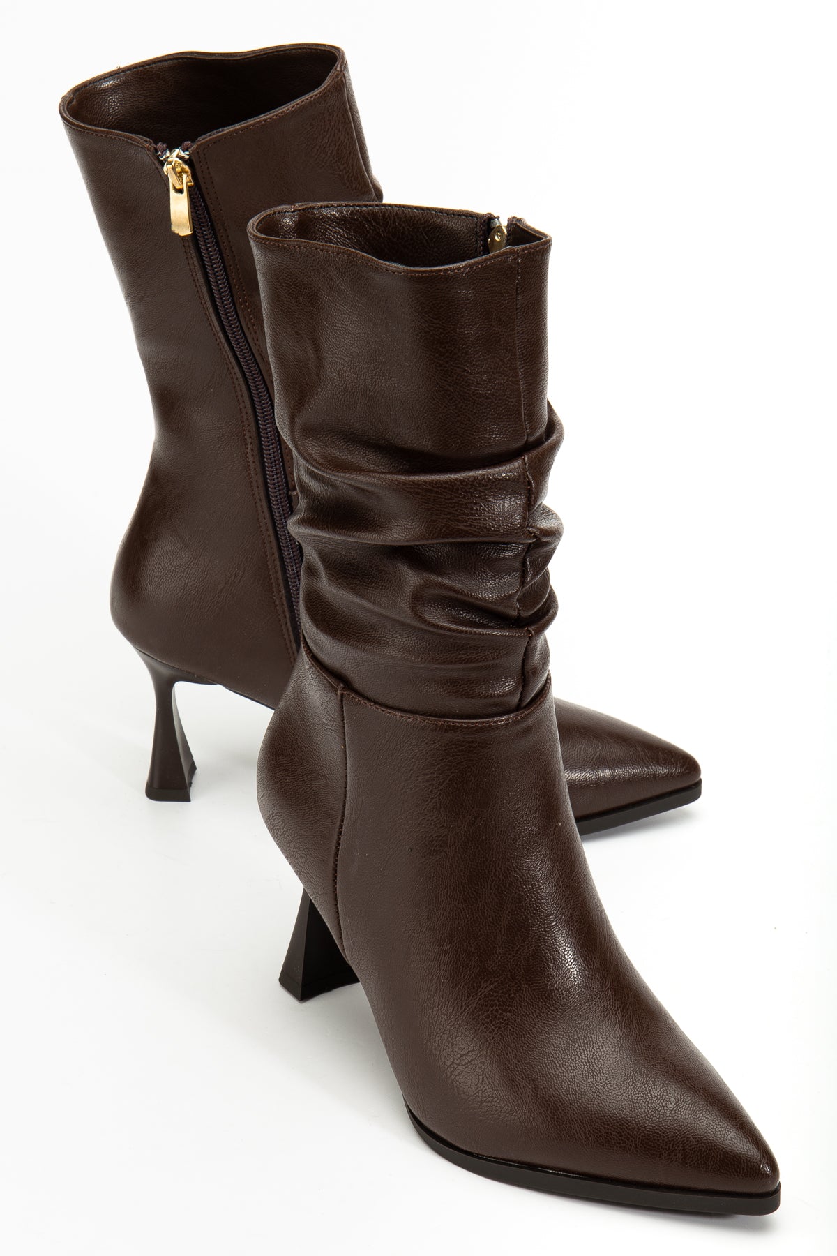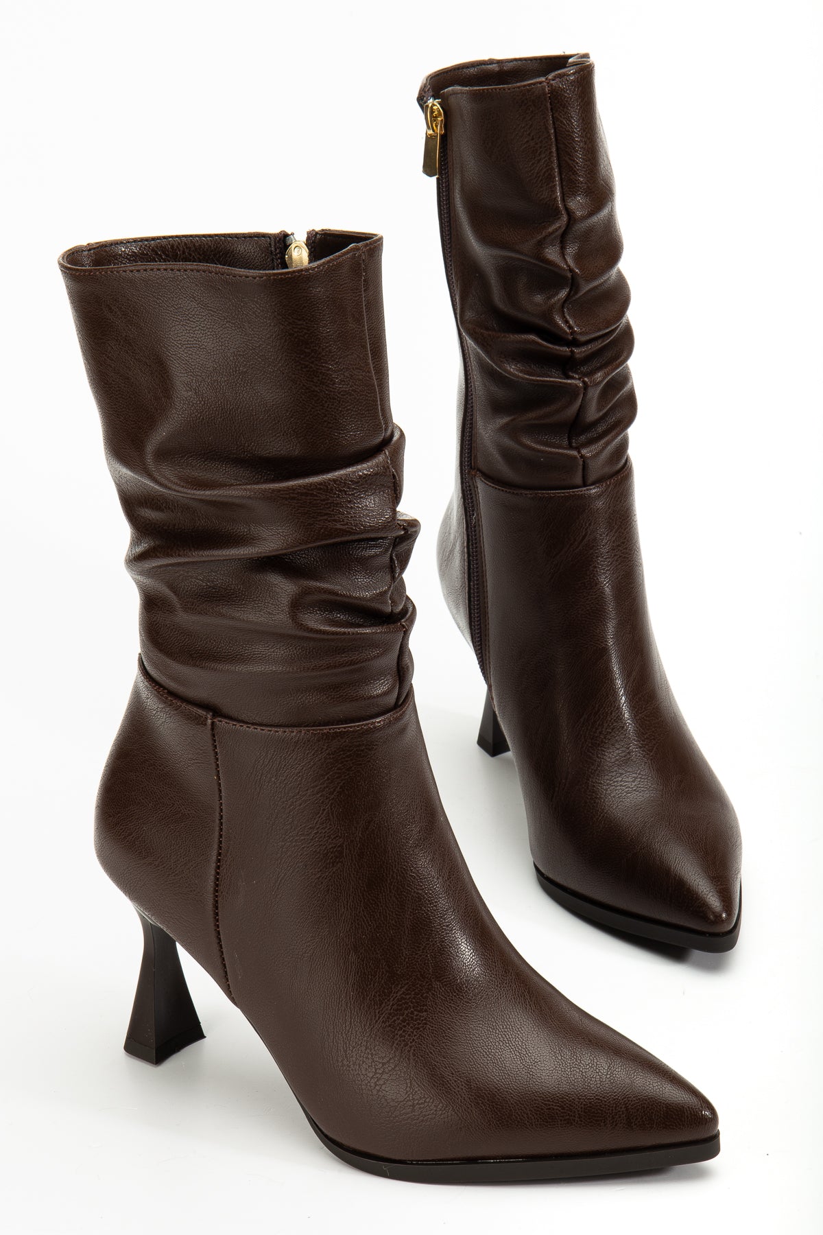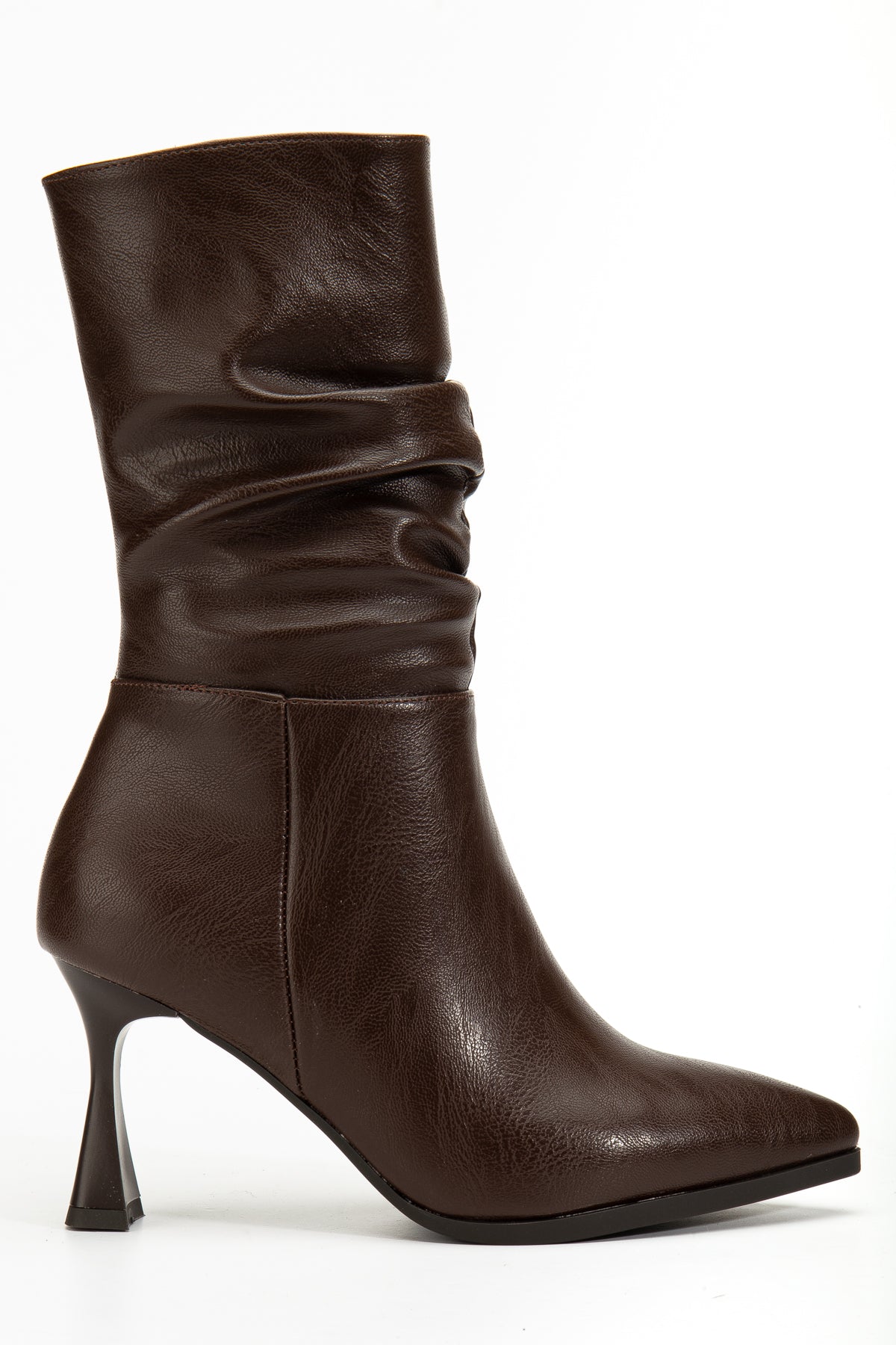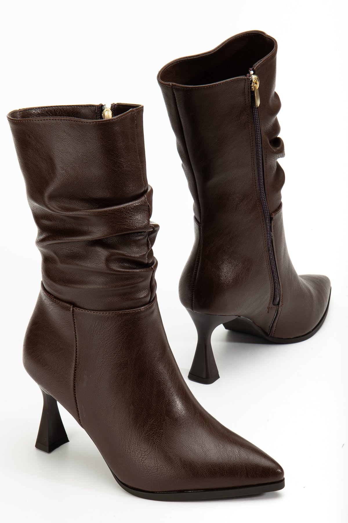 Kadın Topuklu Sivri Burun Körüklü Fermuarlı Kadeh Ökçe Bot Levi