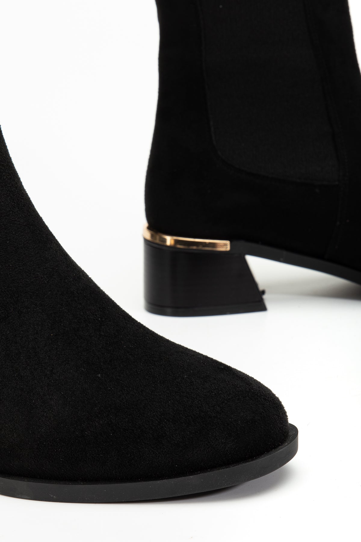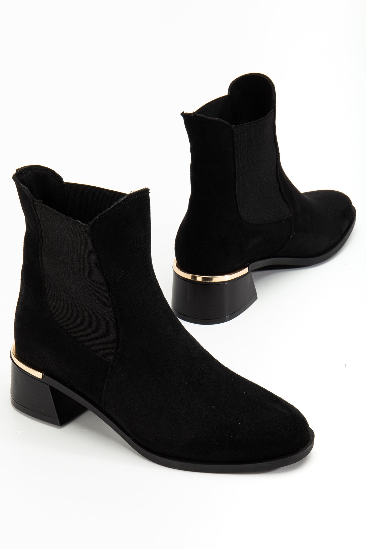 Yuvarlak burun tasarımı: Ayağın doğal şekline uyum sağlar, uzun süreli kullanımlarda bile rahatlık sunar.Çift lastikli esnek yapı: Ayağı nazikçe sarar, farklı bacak ve ayak tiplerine uyum sağlar.Kalın topuk (5 cm): Yürüyüş konforunu korurken şıklığı da öne çıkarır; klasik ince topuklara göre daha dengeli bir duruş sağlar.Minimalist ve modern çizgiler: Pantolon, tayt, etek ve elbise kombinleriyle rahatlıkla uyum sağlar.Kaliteli dış yüzey: Dayanıklı malzemesi ile uzun ömürlü kullanım sunar.İç taban ve destek: 24 cm iç taban, ayağı rahat kavrar ve gün boyu yorgunluğu azaltır.