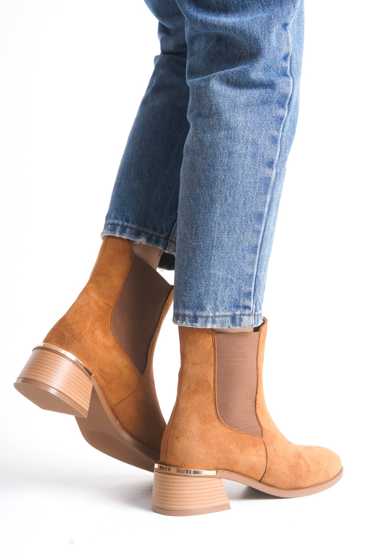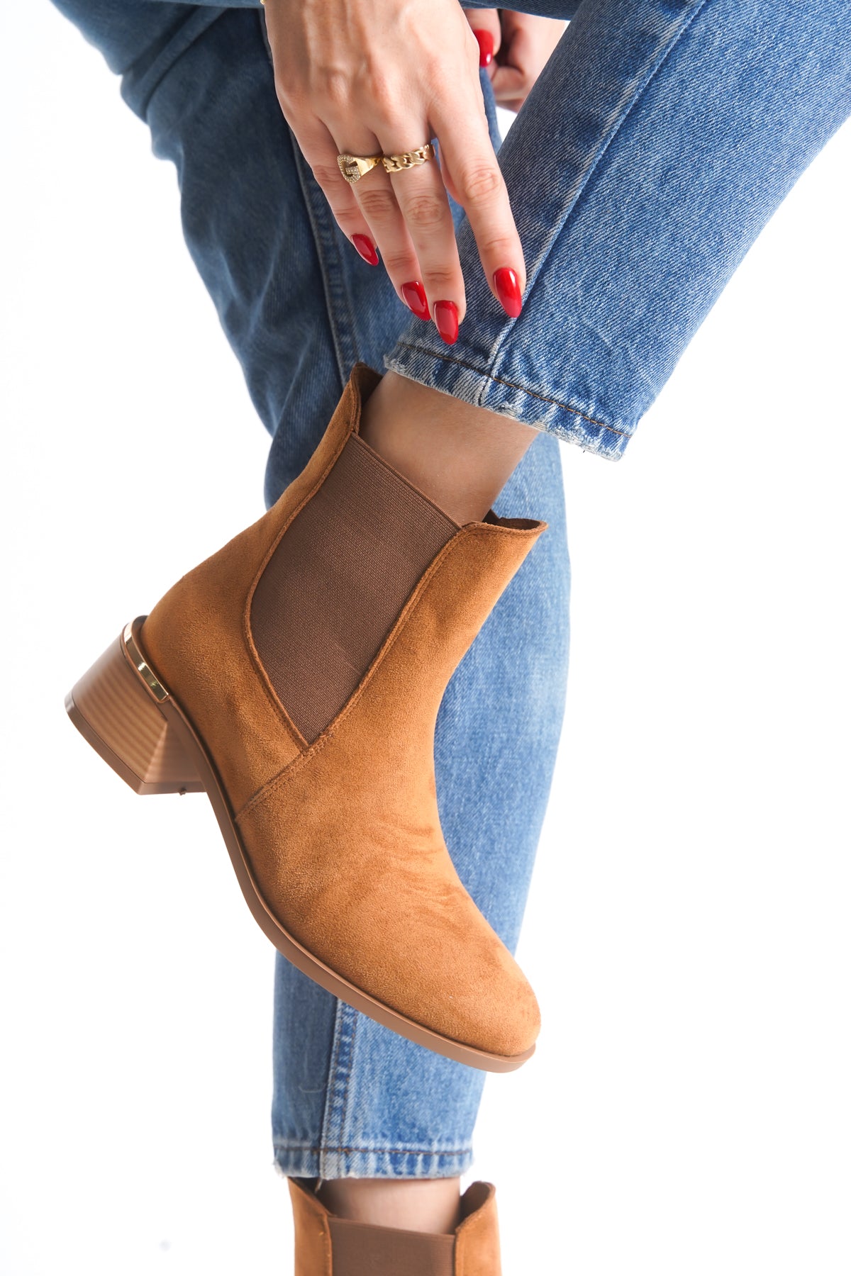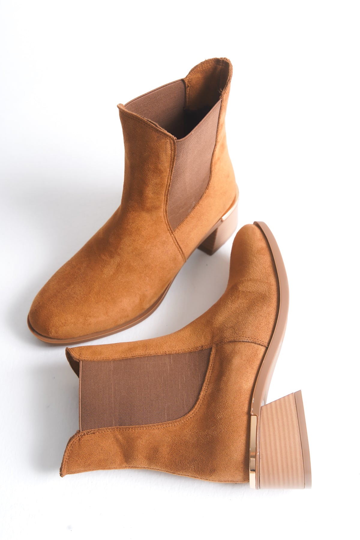 Kadın Yuvarlak Burun Çift Lastikli Günlük Bot Ezra Taba Süet