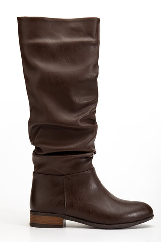 Kadın Diz Altı Fermuarlı Streç Lastikli Günlük Çizme Nora Kahve Cilt
