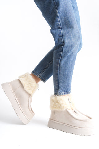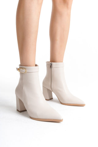 Kadın Yandan Fermuarlı Toka Detaylı Kalın Topuklu Sivri Burunlu Günlük Bot Jura Bej