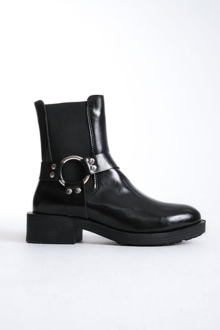 Kadın fermuarlı Toka Detaylı Yuvarlak Burun Kalın Taban Lastikli Günlük Bot Pera Siyah