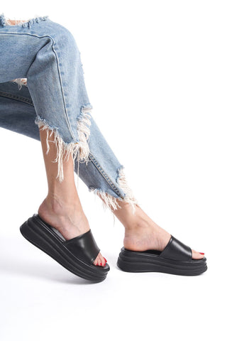 Kadın Küt Burun Günlük İnce Topuk Terlik