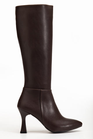 Kadın Sivri Burun Fermuarlı İnce Topuk Günlük Çizme Zera Kahve