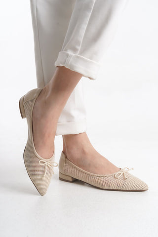 İvory Kadın Günlük Sivri Burun Nefes Alabilen File Detaylı